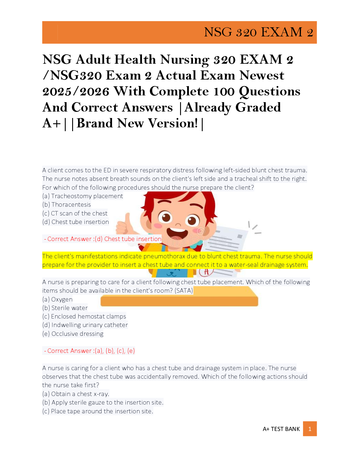 NSG Adult Health Nursing 320 EXAM 2 /NSG320 Exam 2 Actual Exam Newest 2025/2026 With Complete 100 Questions And Correct Answers |Already Graded A+||Brand New Version