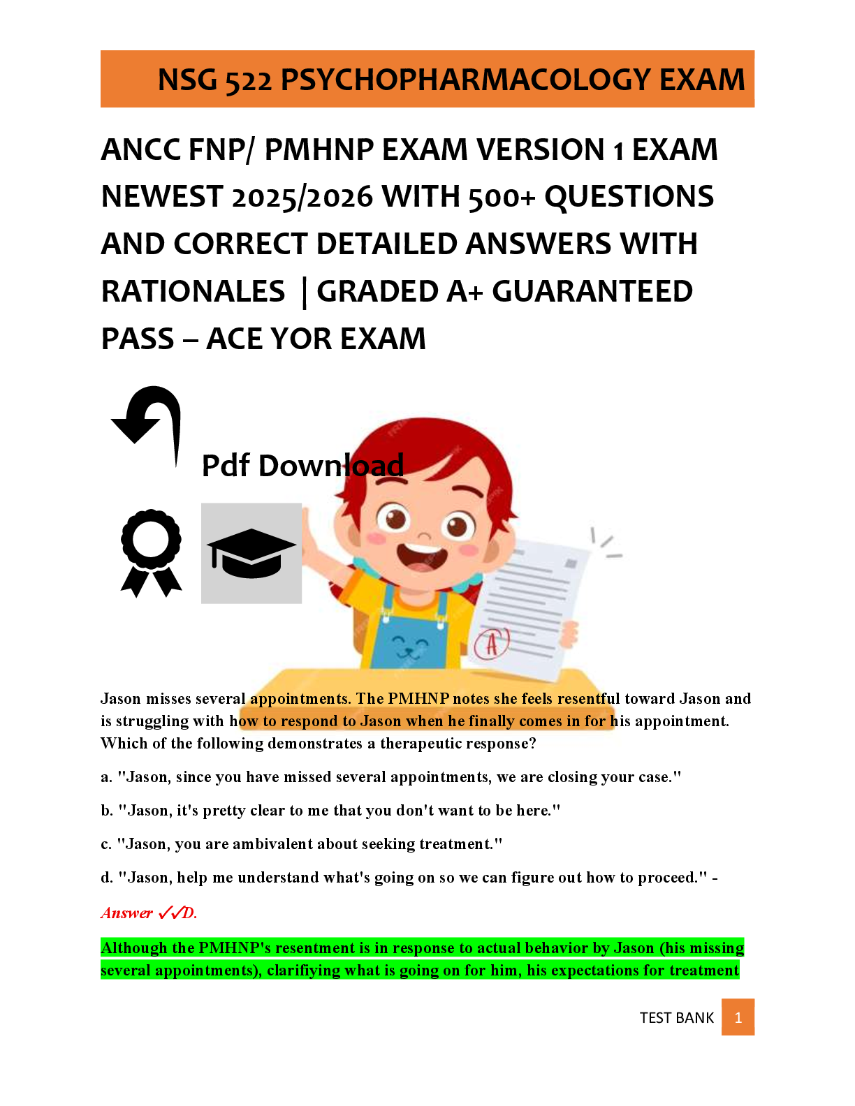 ANCC FNP/ PMHNP EXAM VERSION 1 EXAM NEWEST 2025/2026 WITH 500+ QUESTIONS AND CORRECT DETAILED ANSWERS WITH RATIONALES | GRADED A+ GUARANTEED PASS – ACE YOR EXAM