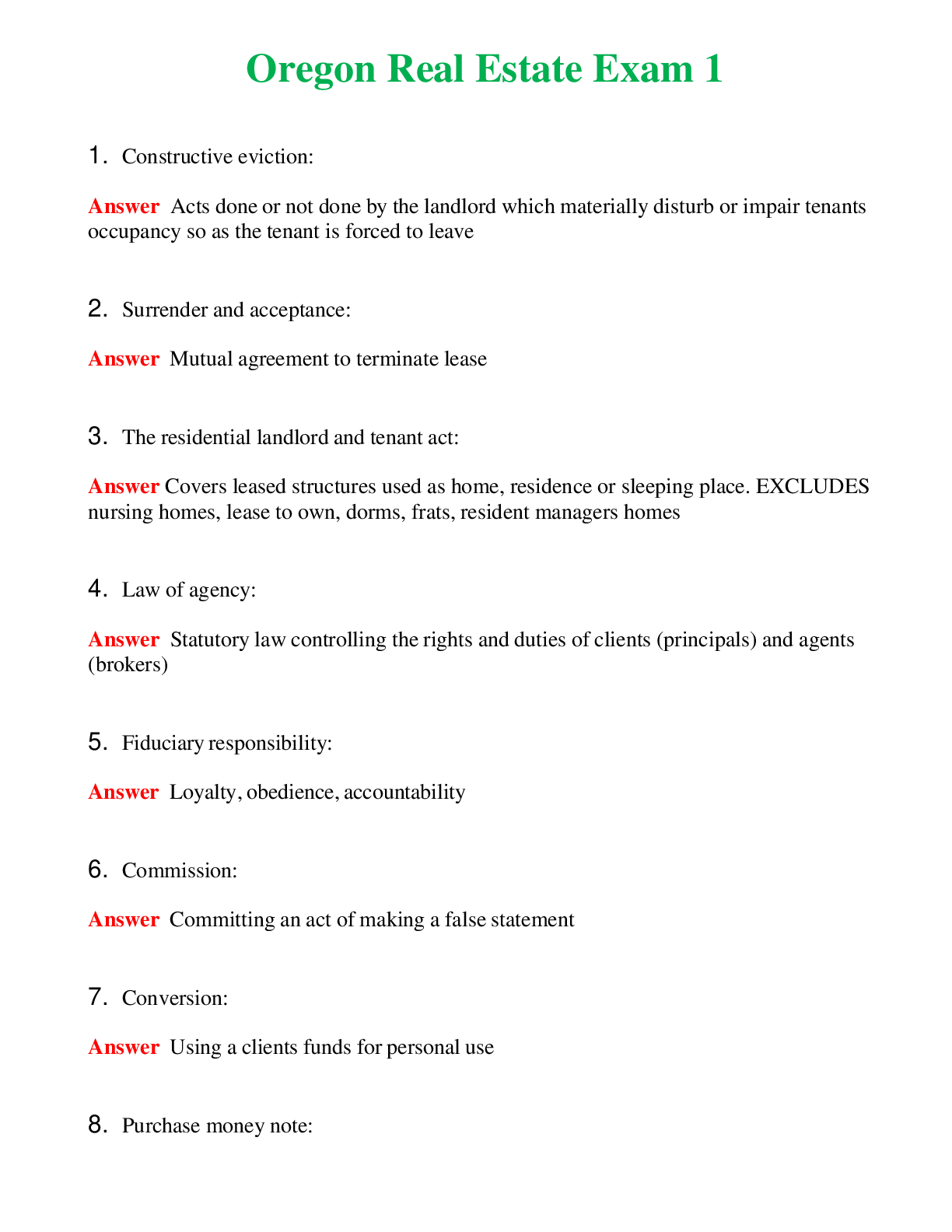 Bundle Oregon Real Estate Exam 1,2,3 A++ Exam with All New Qs & As - Guaranteed Pass! (Latest 2024)