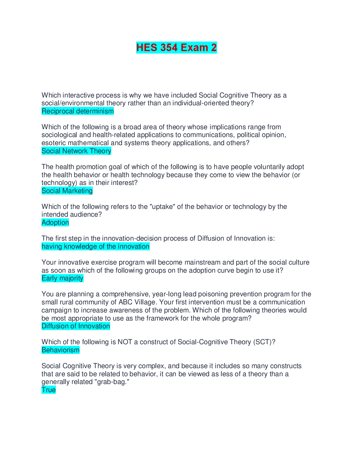 HES 354 EXAM 2-4 BUNDLE