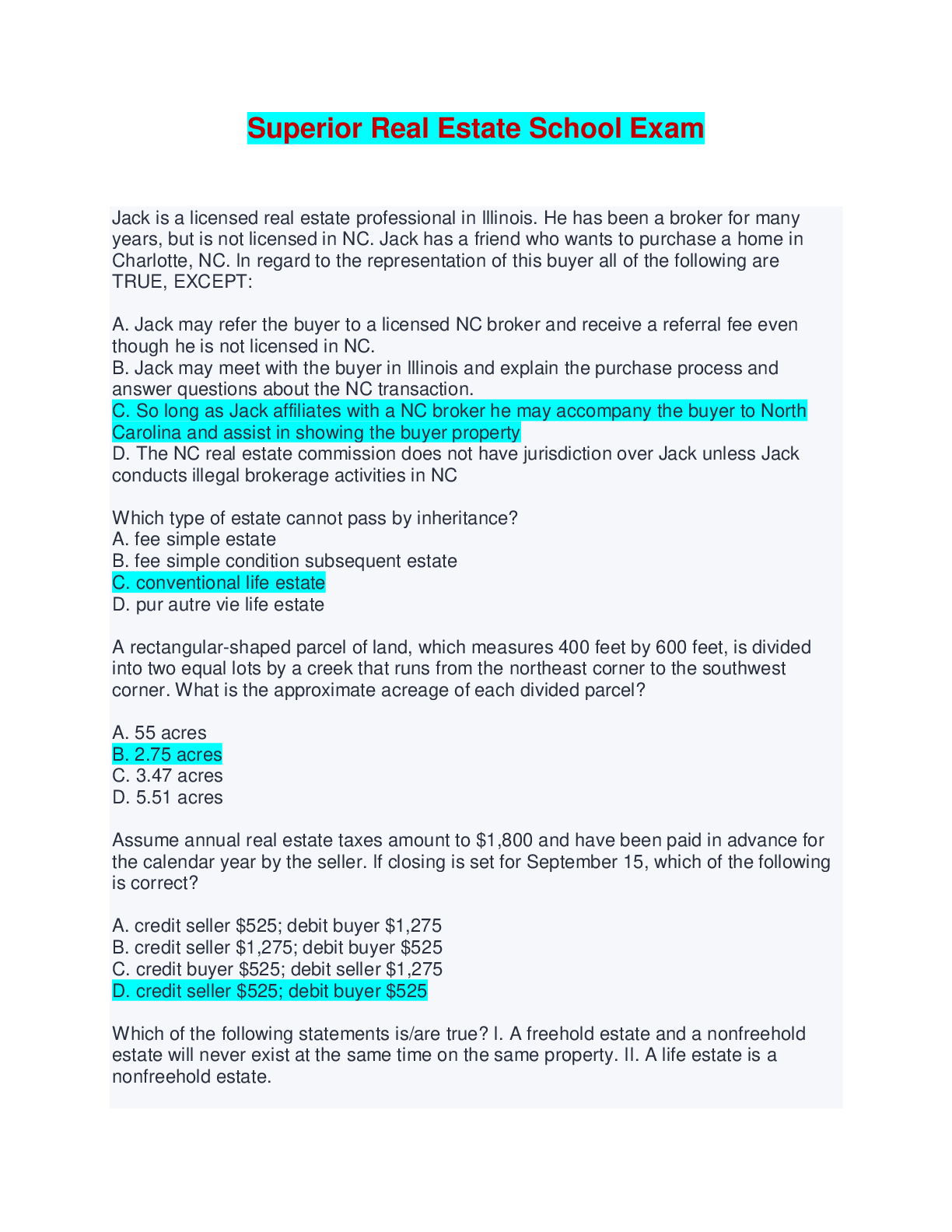 SUPERIOR REAL ESTATE SCHOOL EXAMS BUNDLE