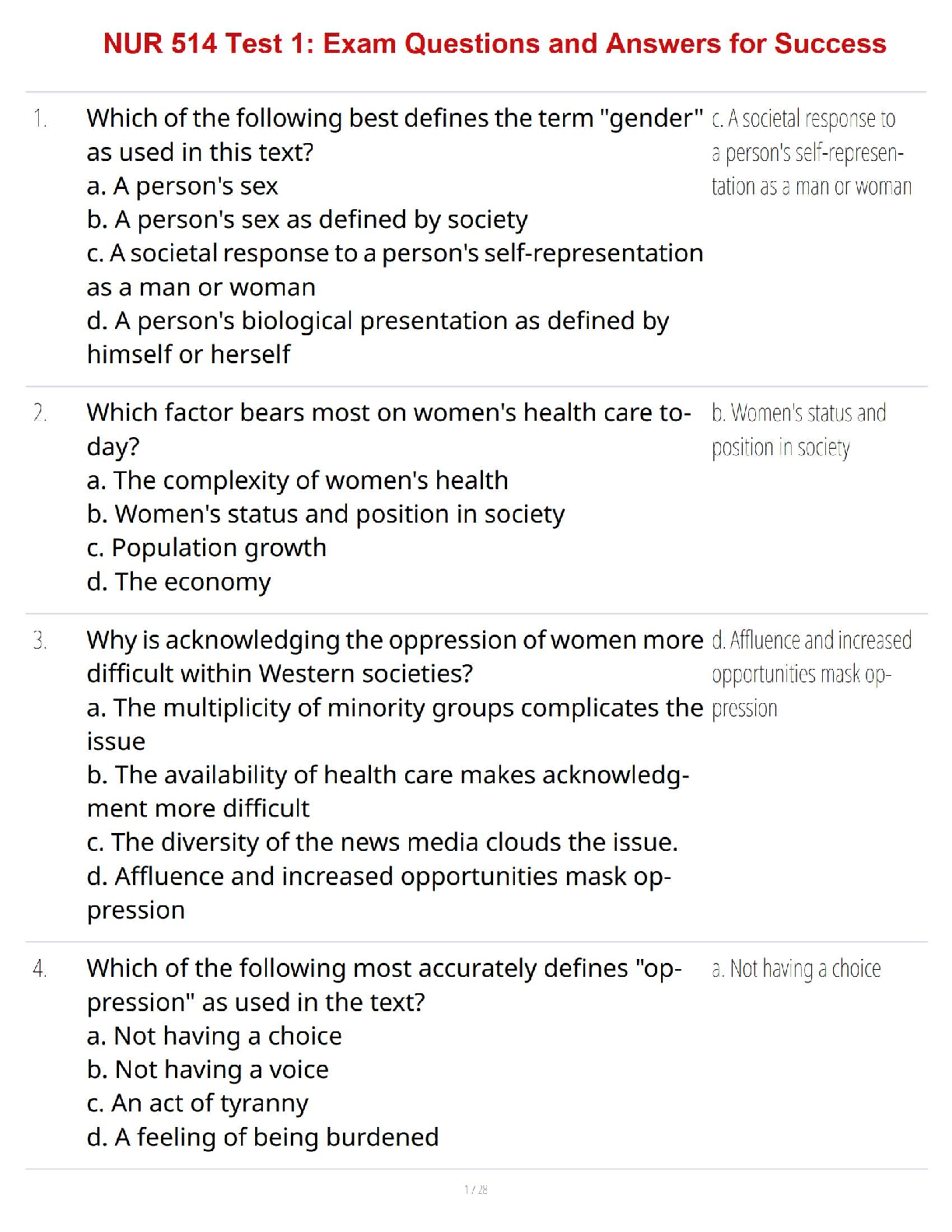 Get the complete NUR 514 Test Bundle (Test 1, Test 2, and Test 3) for only $12—originally valued at $24!📚✅ This 100% verified study package covers all key topics to help you prepare with confidence...