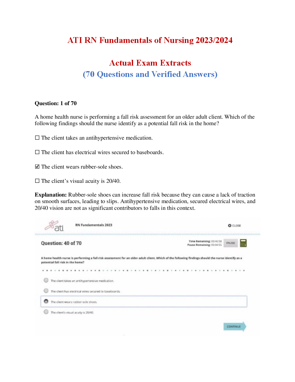 Comprehensive Review of the ATI RN Fundamentals Assessment | 70 Questions with Detailed Answers | All Screenshots | 2024 NGN Edition