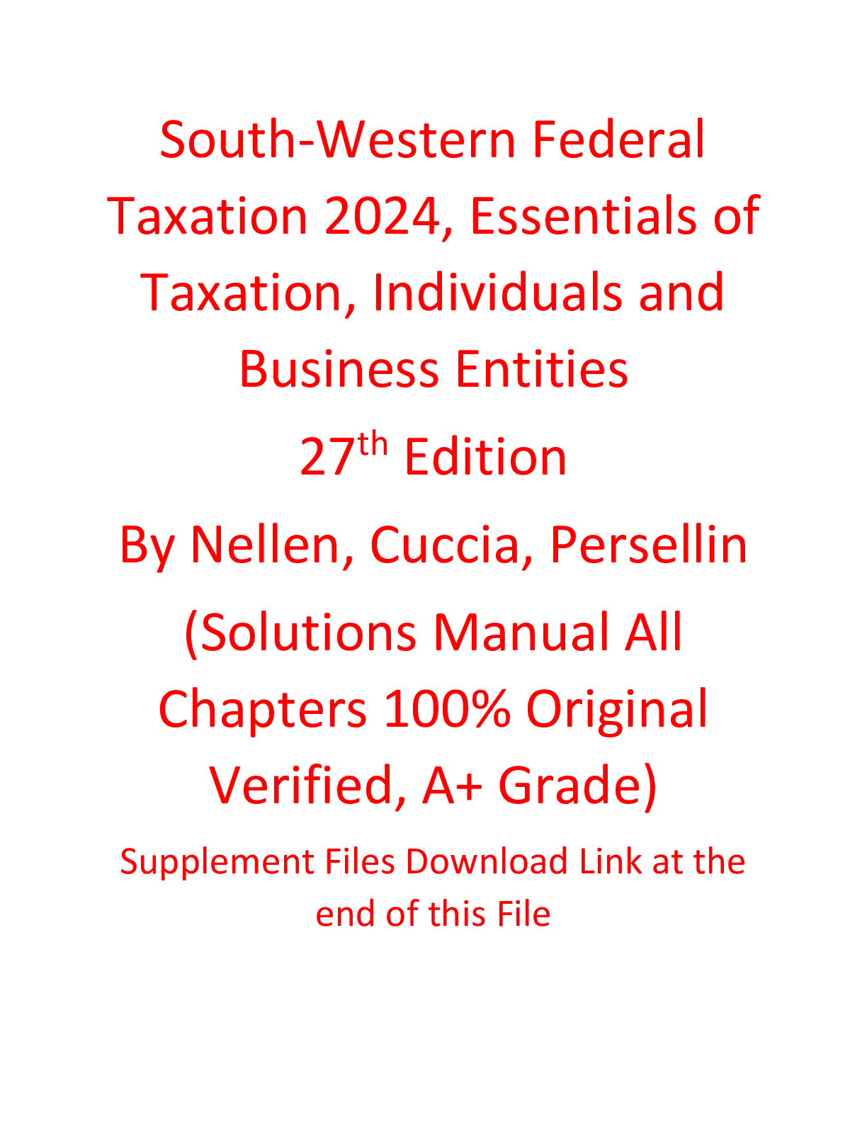Solution Manual with Test Bank For South-Western Federal Taxation 2024, Essentials of Taxation, Individuals and Business Entities 27th Edition By Nellen, Cuccia, Persellin (All Chapters 100% Original...