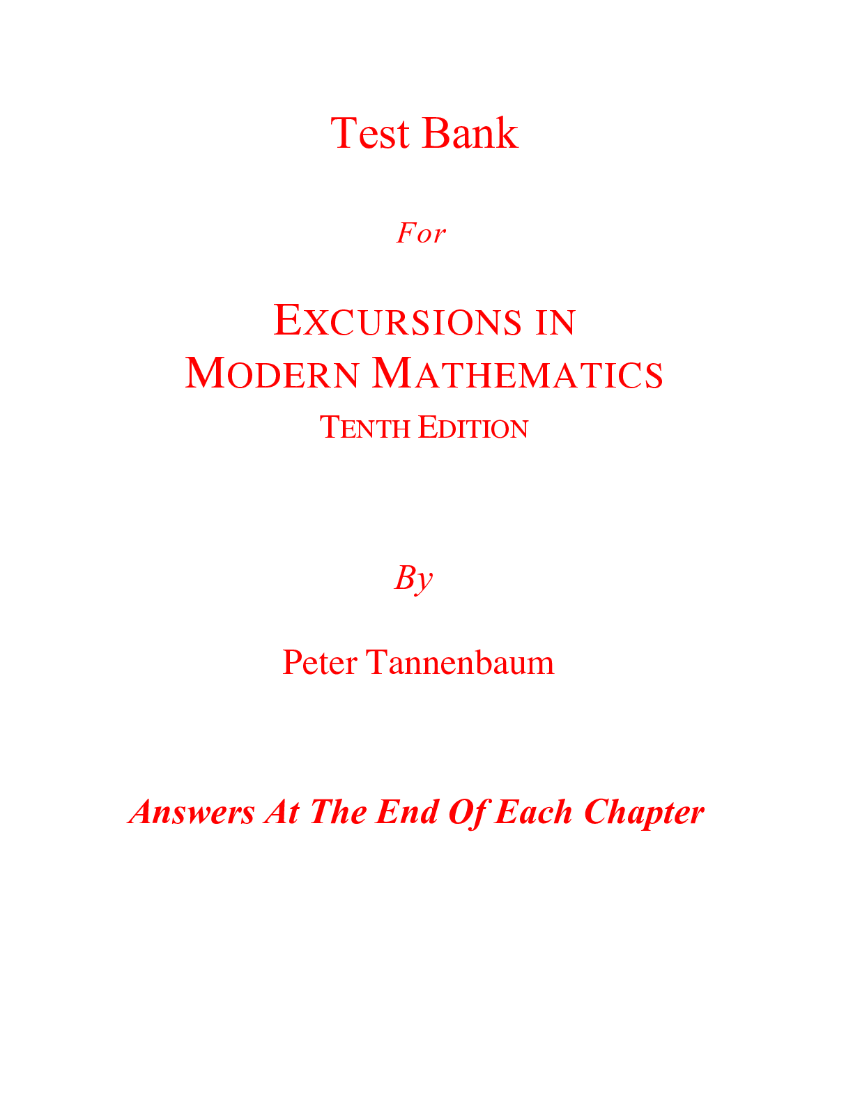 Test Bank With Solutions Manual For Excursions in Modern Mathematics 10th Edition By Peter Tannenbaum (All Chapters, 100% Original Verified, A+ Grade) Test Bank With Solutions Manual For Excursion...