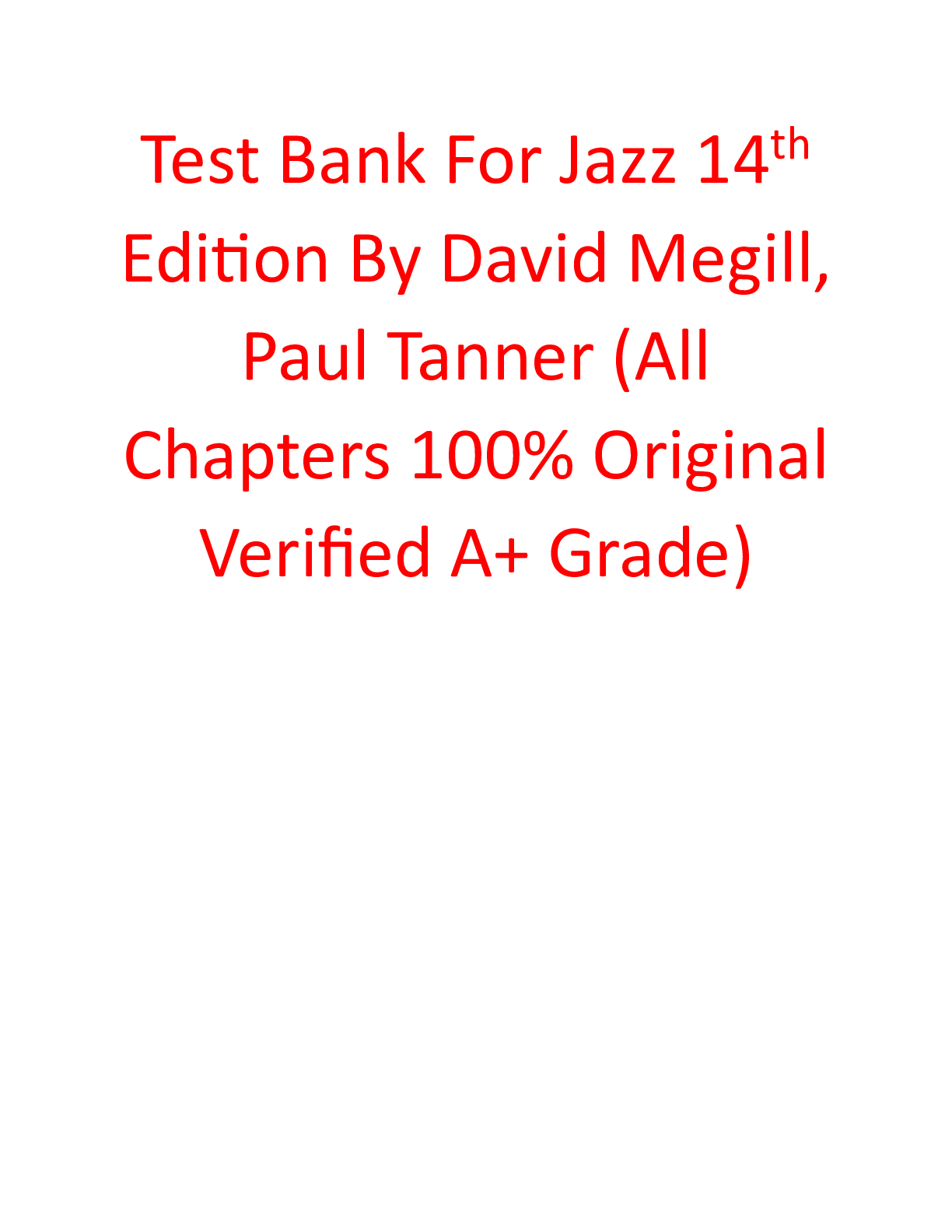 Instructor Instructor Manual with Test Bank For Jazz 14th Edition By David Megill, Paul Tanner (All Chapters, 100% Original Verified, A+ Grade) Instructor Manual with Test Bank For Jazz 14th Editio...