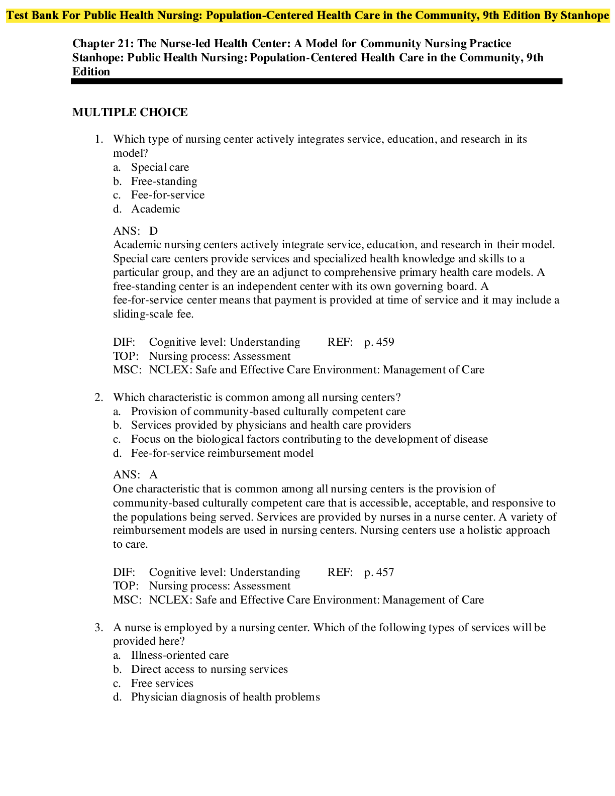 Test Bank For Public Health Nursing: Population-Centered Health Care in the Community, 9th Edition By Stanhope (All Chapters Covered)