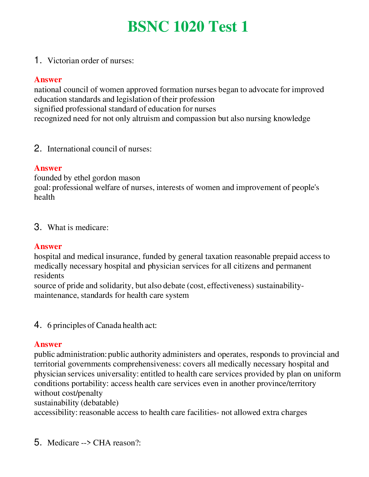 Bundle 2024 BSNC 1020 Test 1,2,3,4 Complete Questions & Answers (Solved) 100% Correct