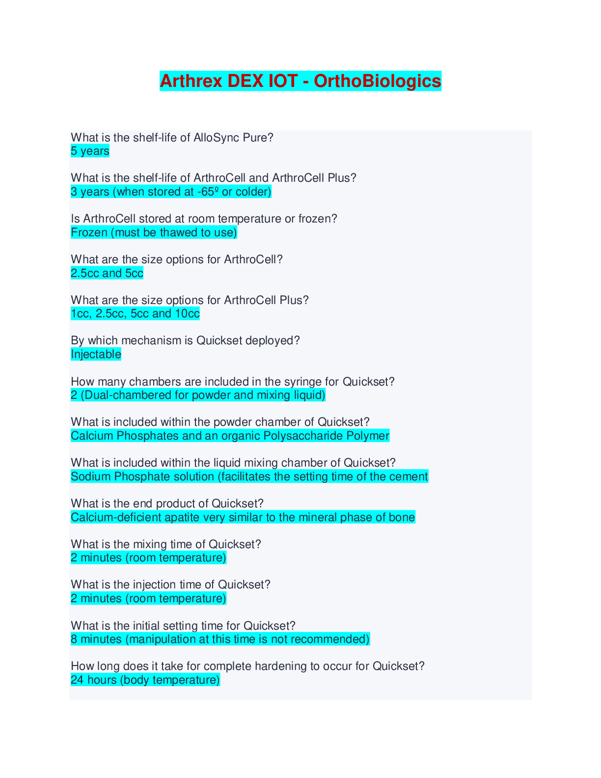 Health Care> STUDY GUIDE > Arthrex DEX IOT Study Guide - Questions and Answers (All)