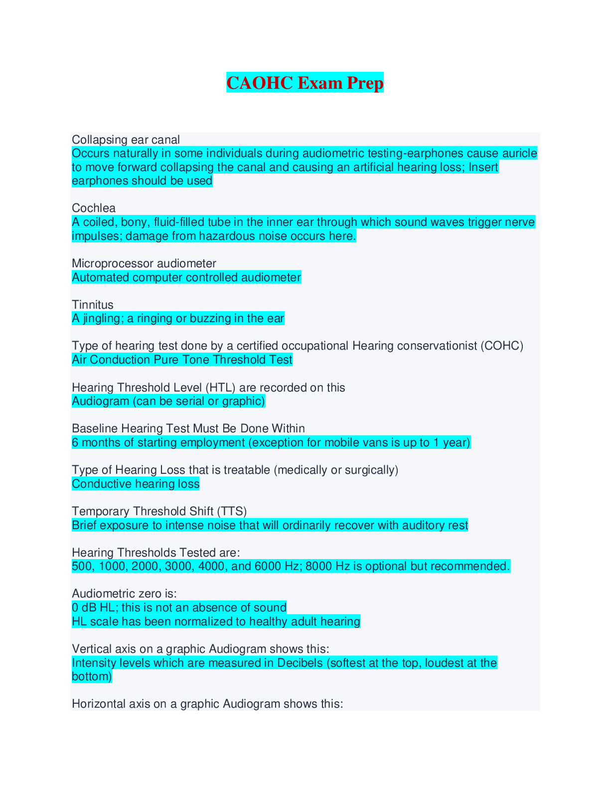 Health Care> EXAM > CAOHC Exam Prep - Questions with Verified Answers (All)