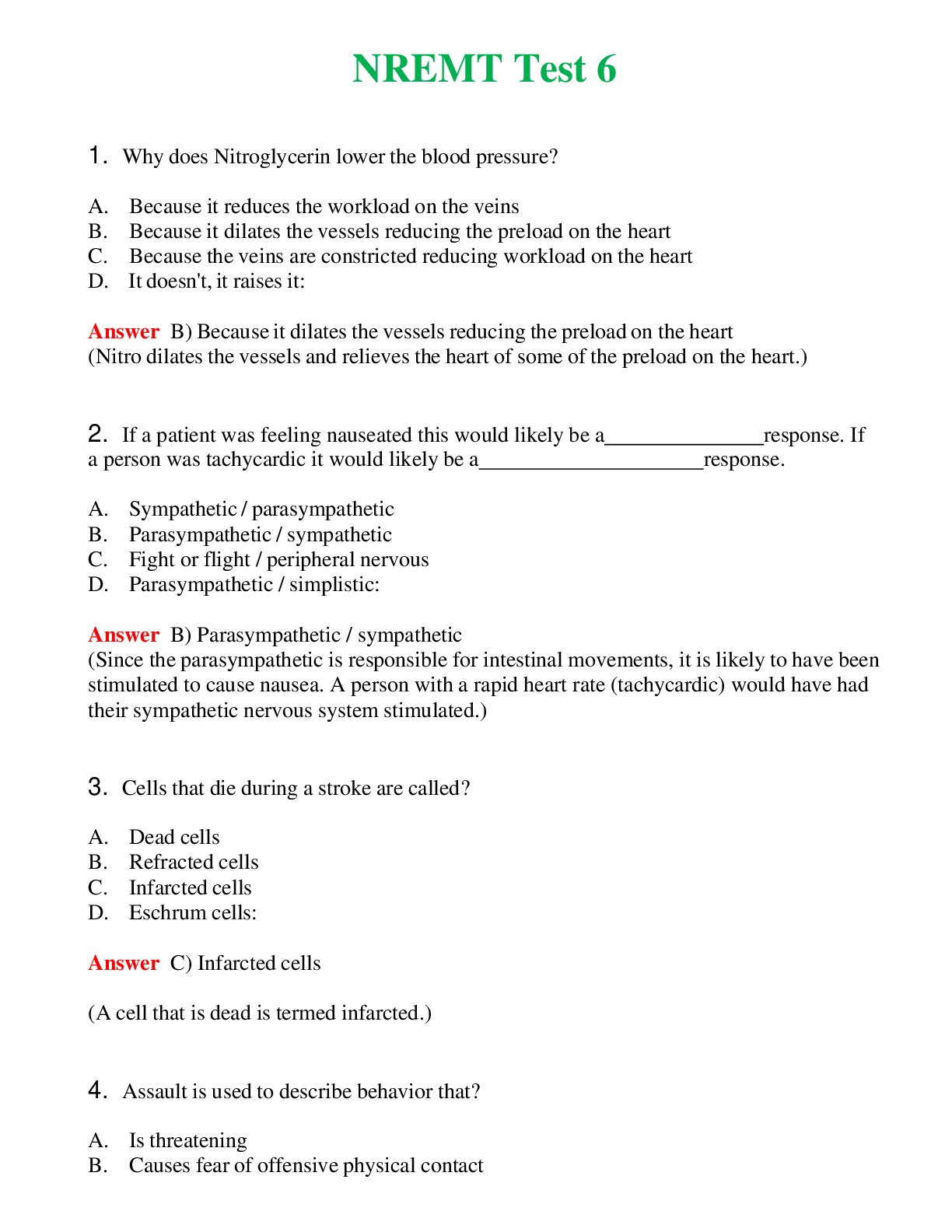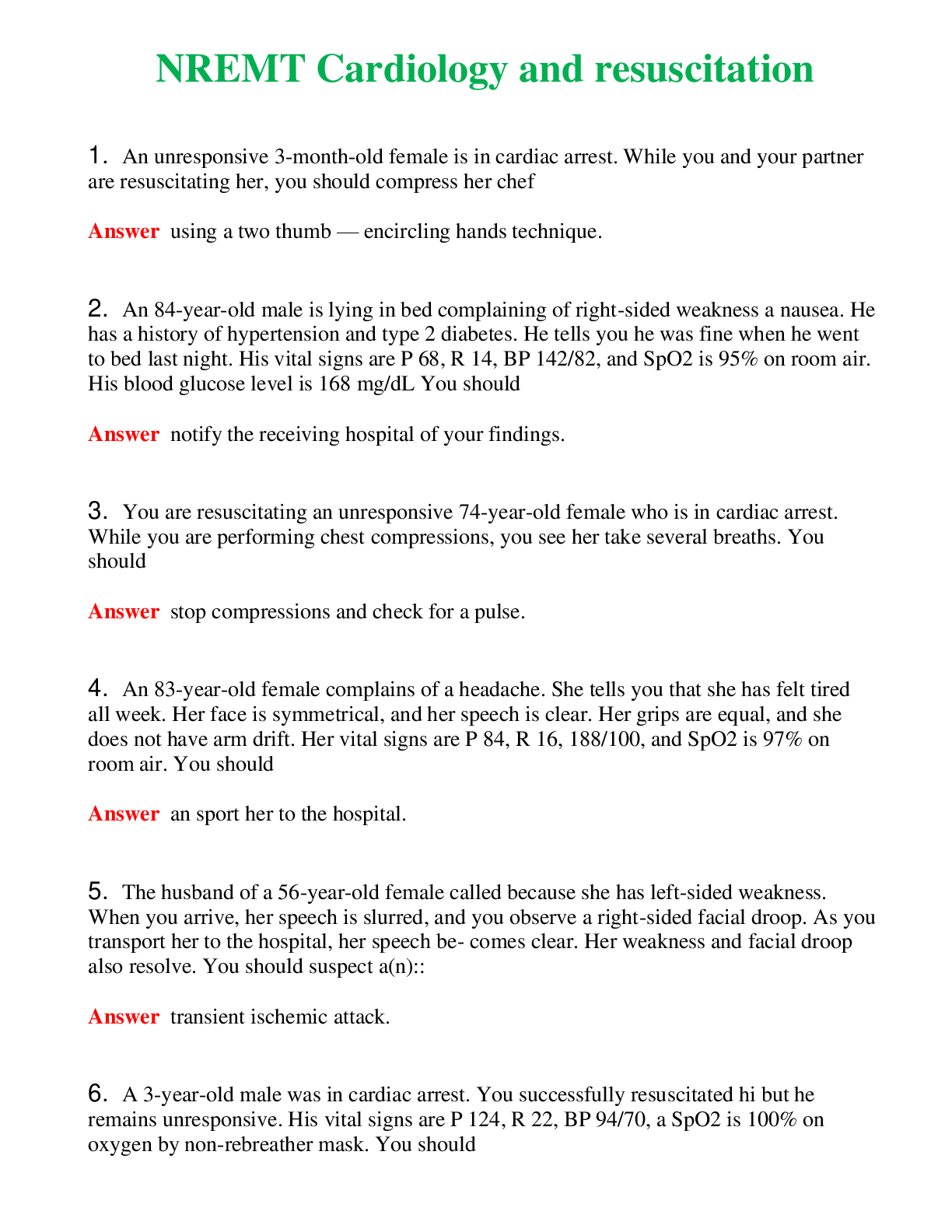 NREMT Test 6 (Latest 2024) Questions With Complete Grade A+ AnswersNREMT Test 6 (Latest 2024) Questions With Complete Grade A+ Answers