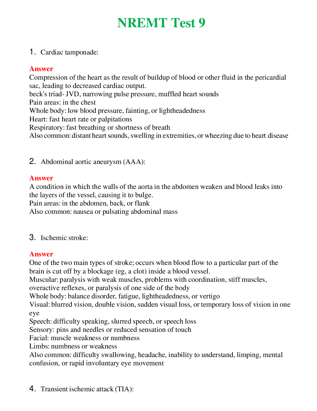 NREMT Test 9 (Latest 2024) Questions With Complete Grade A+ AnswersNREMT Test 9 (Latest 2024) Questions With Complete Grade A+ Answers
