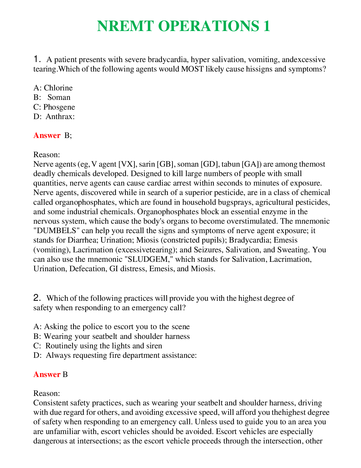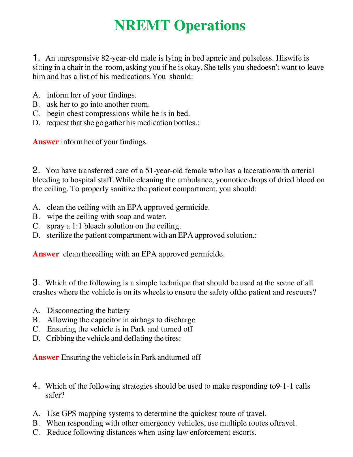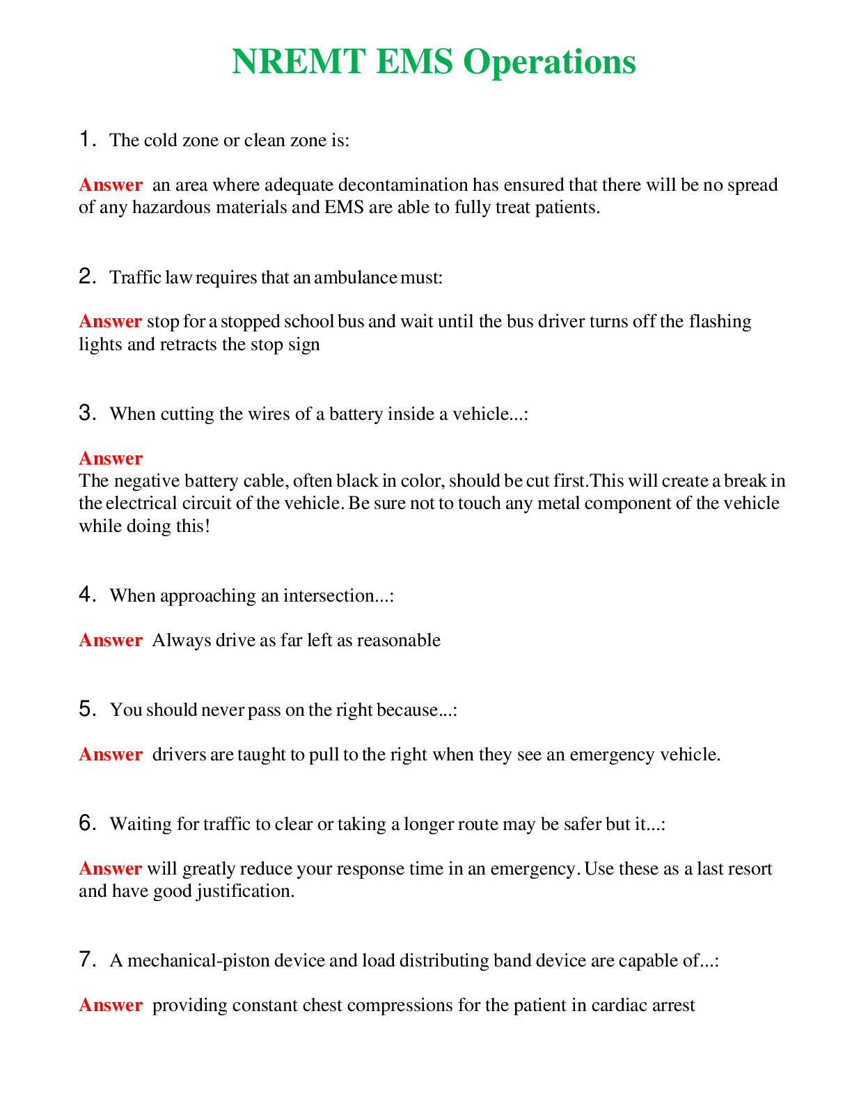 NREMT Operations (Latest 2024) Questions With Complete Grade A+ AnswersNREMT Operations (Latest 2024) Questions With Complete Grade A+ Answers