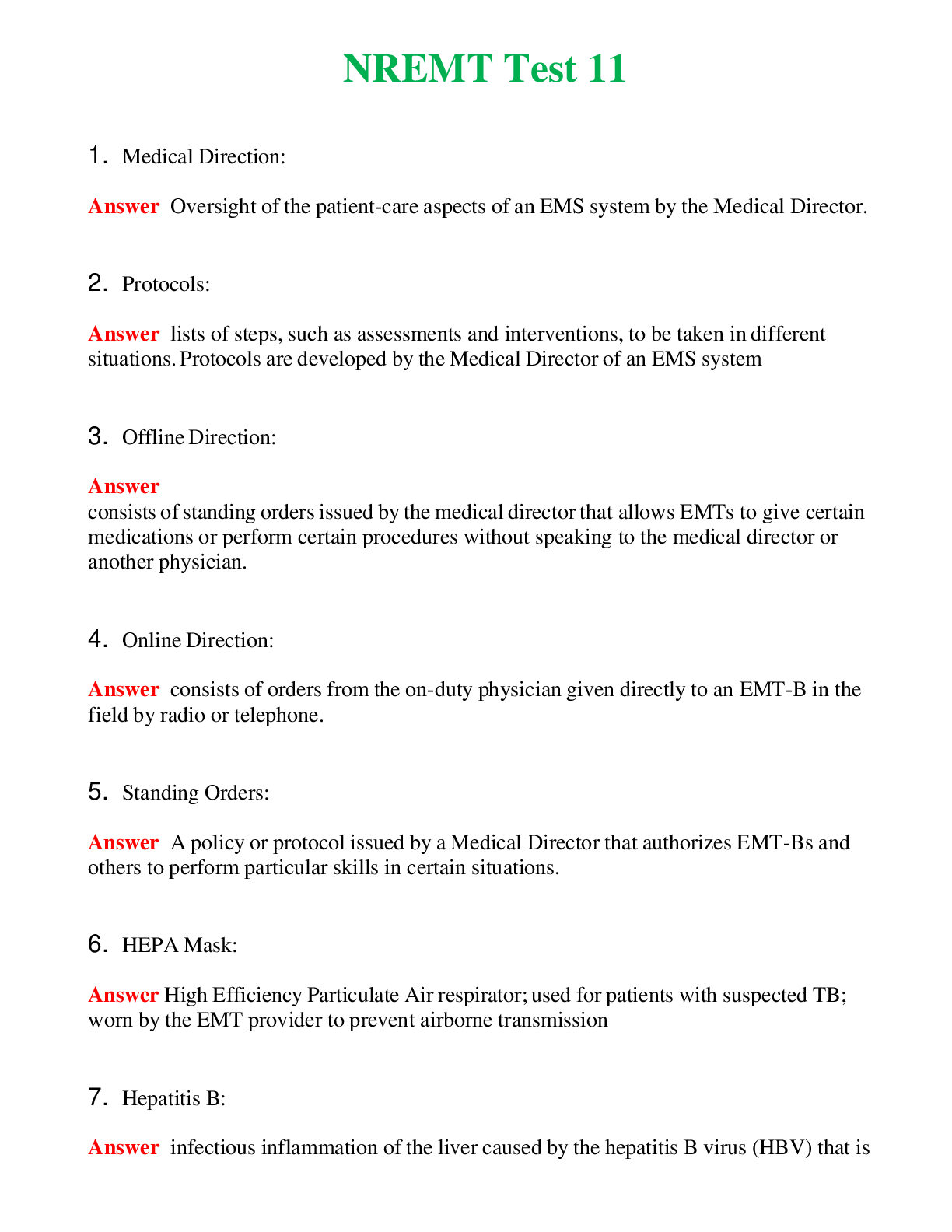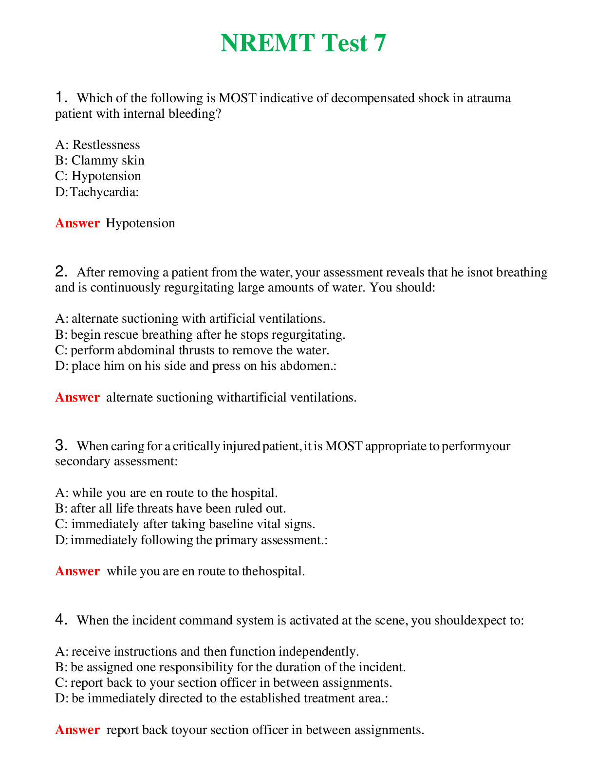 NREMT Test 7 (Latest 2024) Questions With Complete Grade A+ Answers NREMT Test 7 (Latest 2024) Questions With Complete Grade A+ Answers