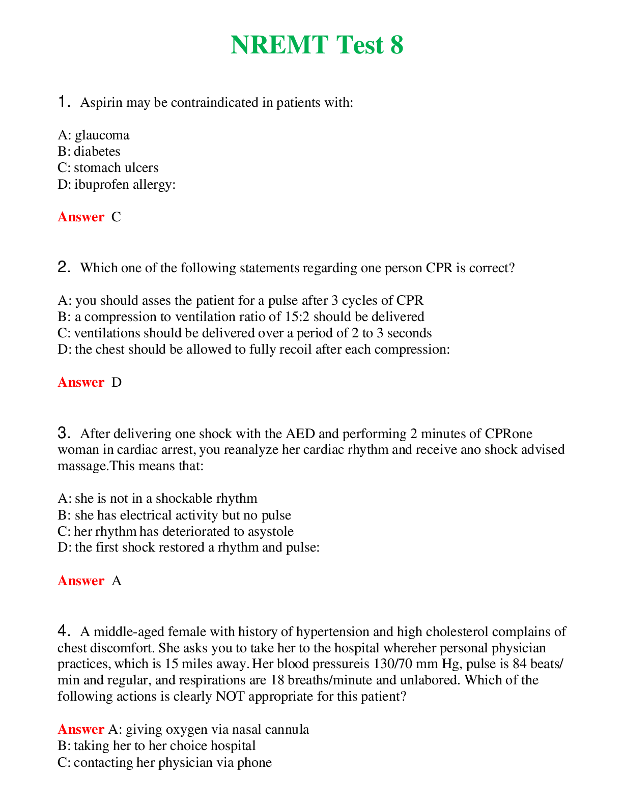 NREMT Test 8 (Latest 2024) Questions With Complete Grade A+ AnswersNREMT Test 8 (Latest 2024) Questions With Complete Grade A+ Answers