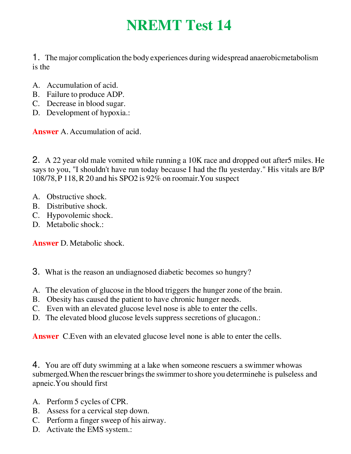 NREMT Test 14 (Latest 2024) Questions With Complete Grade A+ Answers NREMT Test 14 (Latest 2024) Questions With Complete Grade A+ Answers