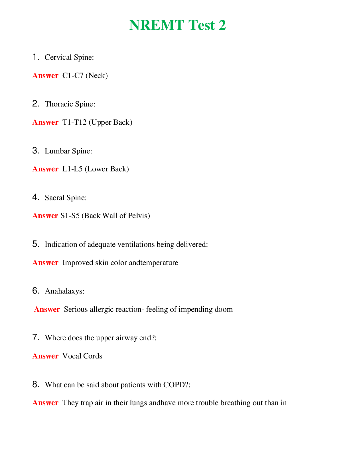 NREMT Test 2 (Latest 2024) Questions With Complete Grade A+ AnswersNREMT Test 2 (Latest 2024) Questions With Complete Grade A+ Answers