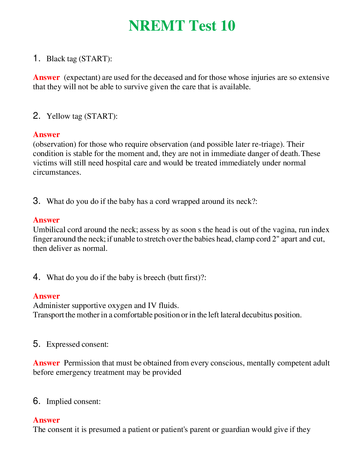 NREMT Test 10 (Latest 2024) Questions With Complete Grade A+ Answers NREMT Test 10 (Latest 2024) Questions With Complete Grade A+ Answers