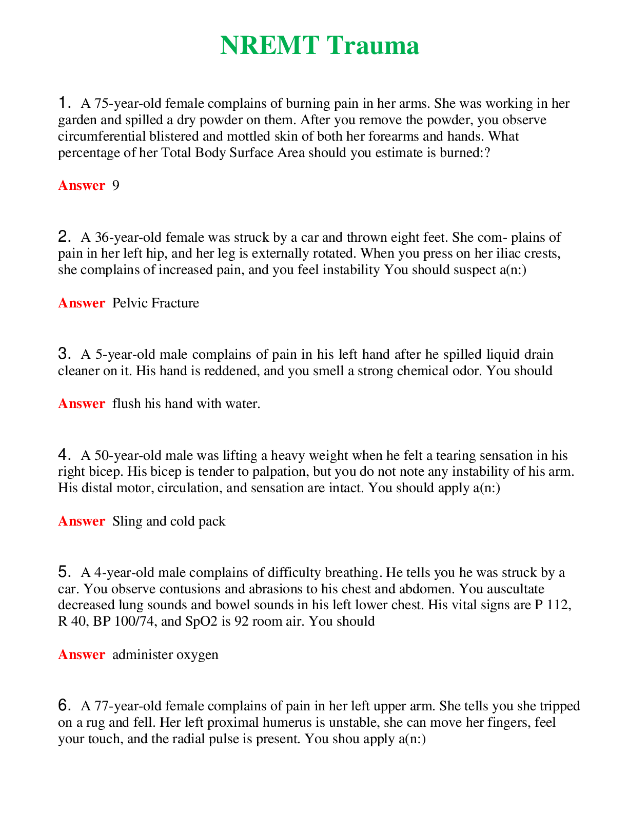 *NURSING> EXAM > NREMT Trauma (Latest 2024) Questions With Complete Grade A+ Answers (All)