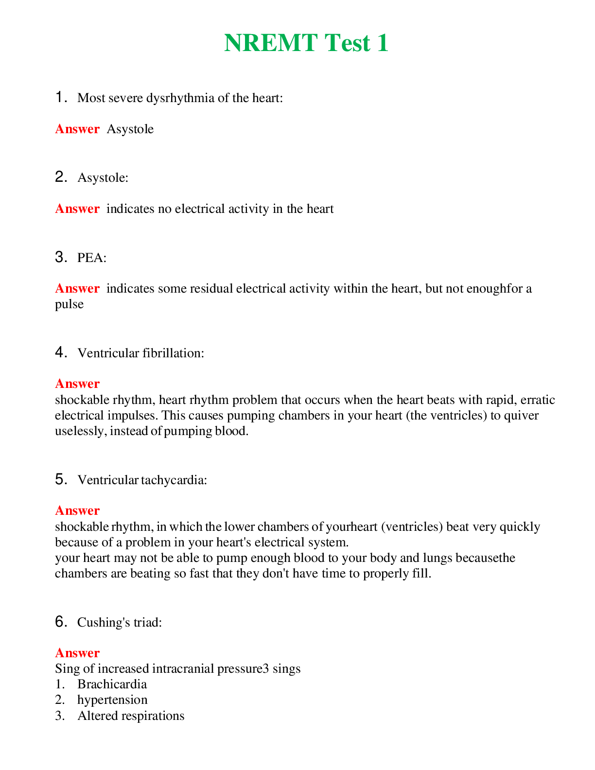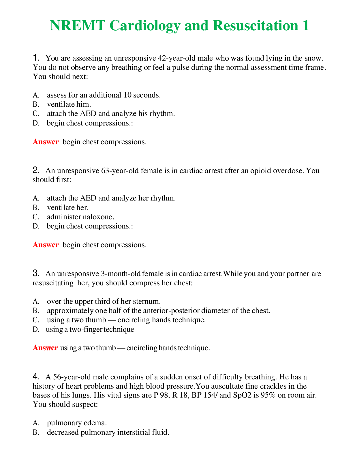 *NURSING> EXAM > NREMT Cardiology and Resuscitation 1 (Latest 2024) Questions With Complete Grade A+ Answers (All)