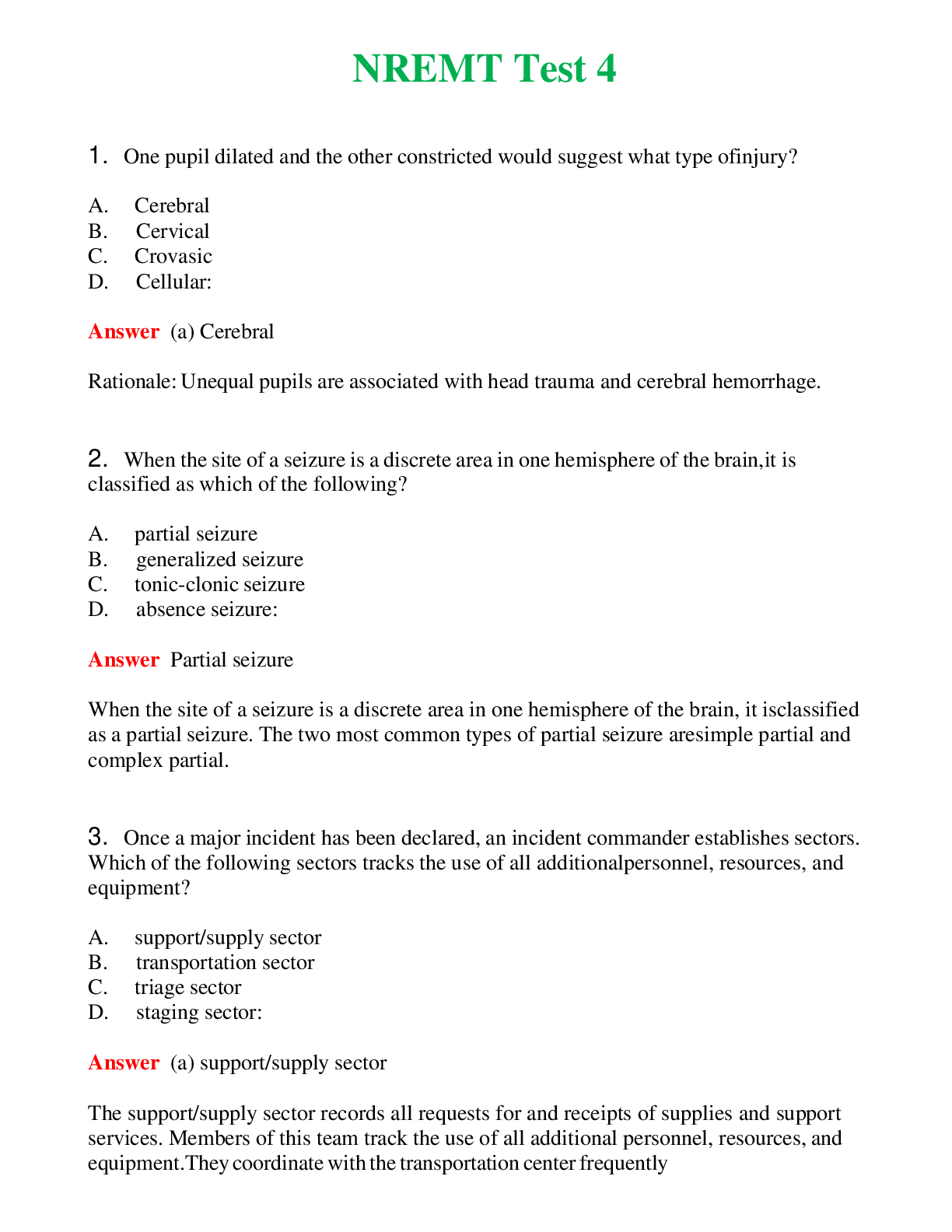 NREMT Test 4 (Latest 2024) Questions With Complete Grade A+ AnswersNREMT Test 4 (Latest 2024) Questions With Complete Grade A+ Answers