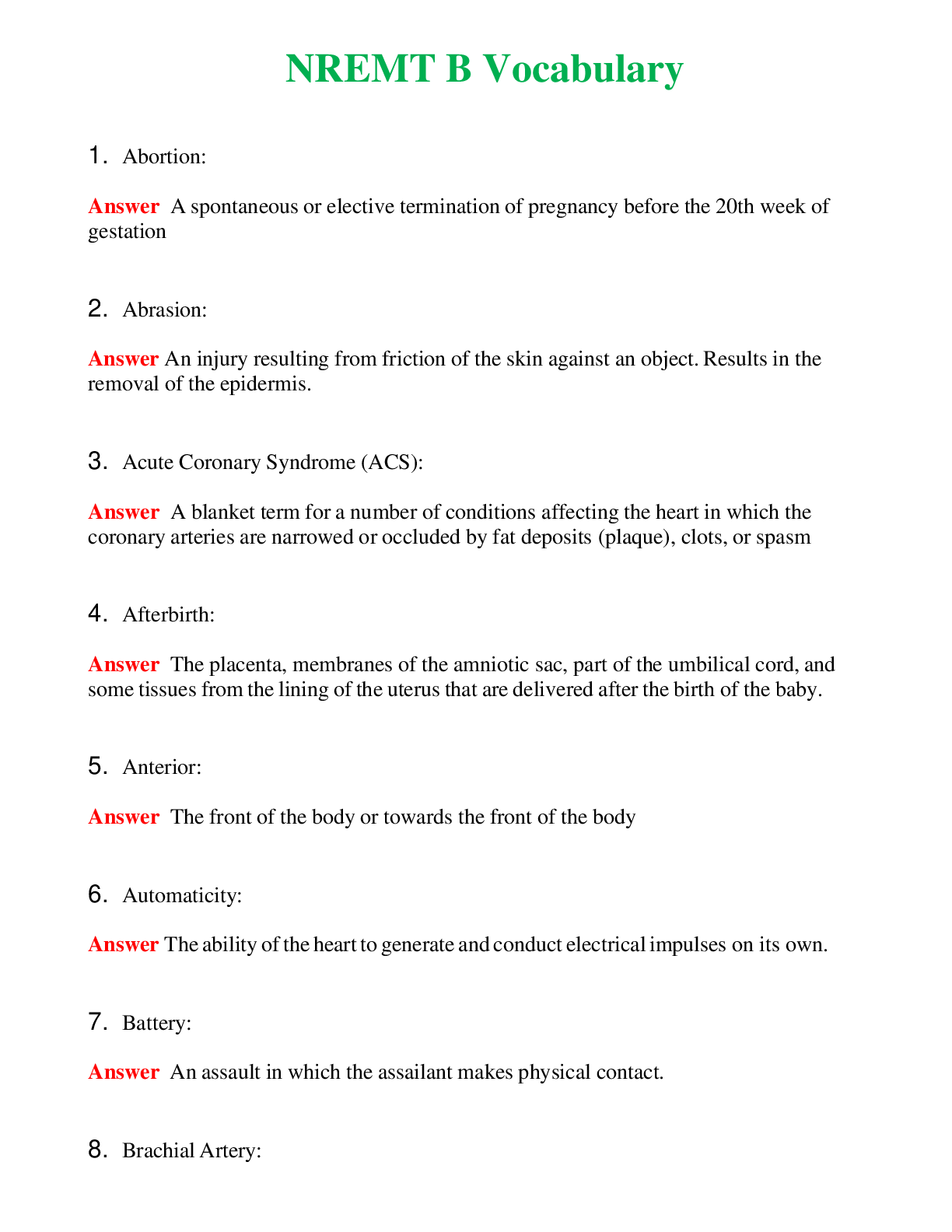 NREMT B Vocabulary (Latest 2024) Questions With Complete Grade A+ AnswersNREMT B Vocabulary (Latest 2024) Questions With Complete Grade A+ Answers