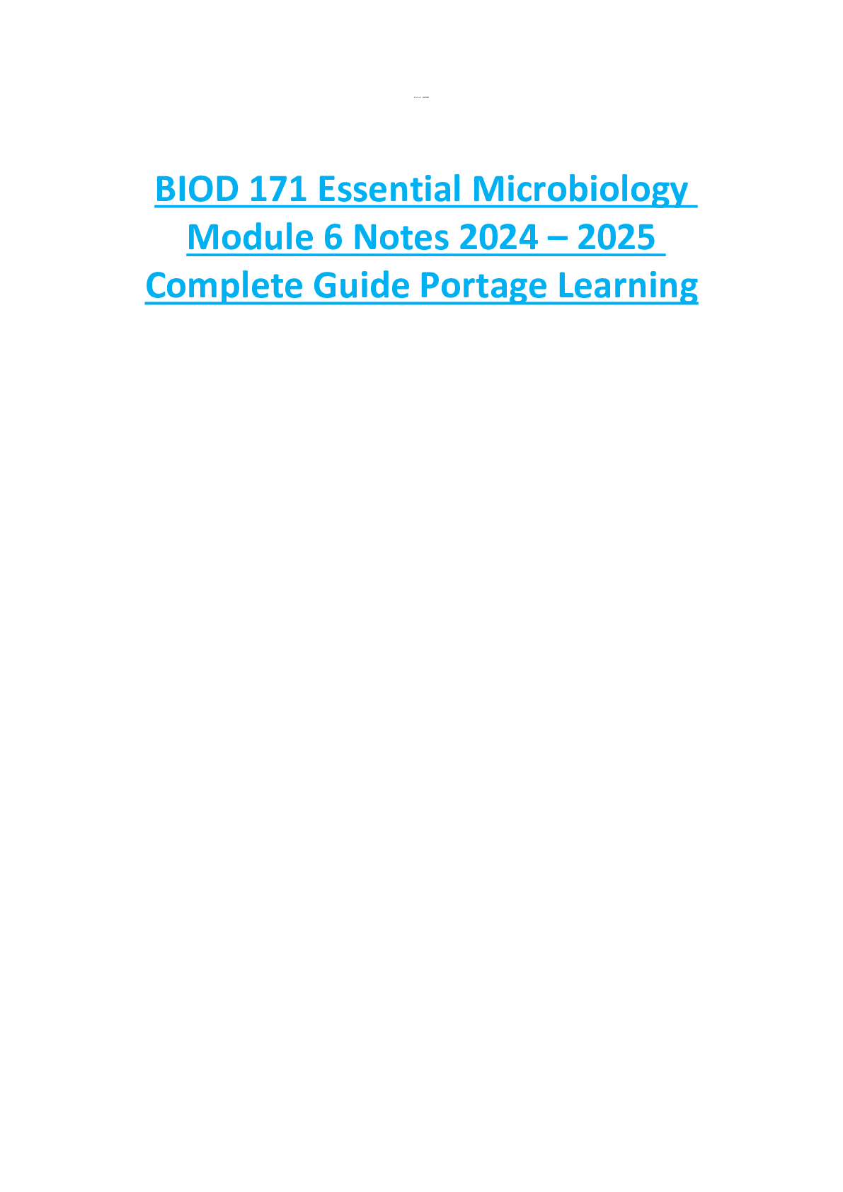 *NURSING> EXAM > BIOD 171 Essential Microbiology Module 6 Notes 2024 – 2025 Complete Guide Portage Learning (All)