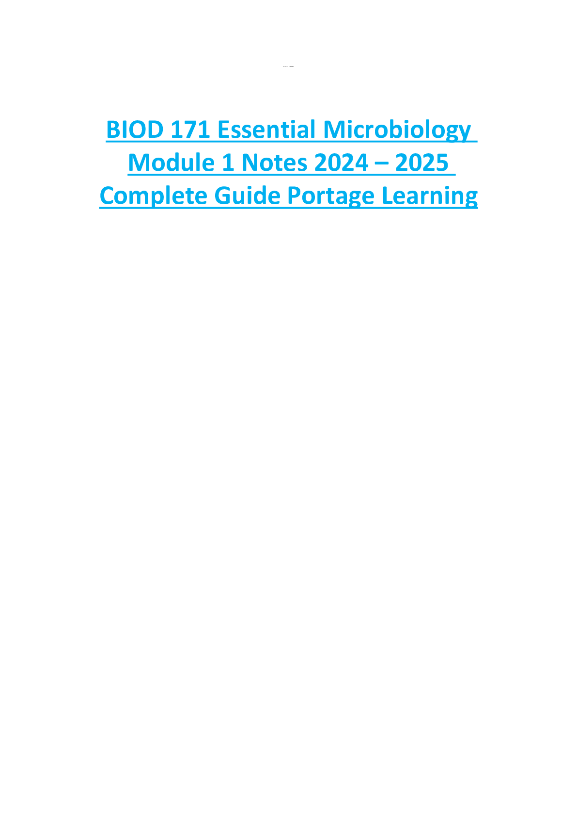 *NURSING> EXAM > BIOD 171 Essential Microbiology Module 1 Notes 2024 – 2025 Complete Guide Portage Learning (All)