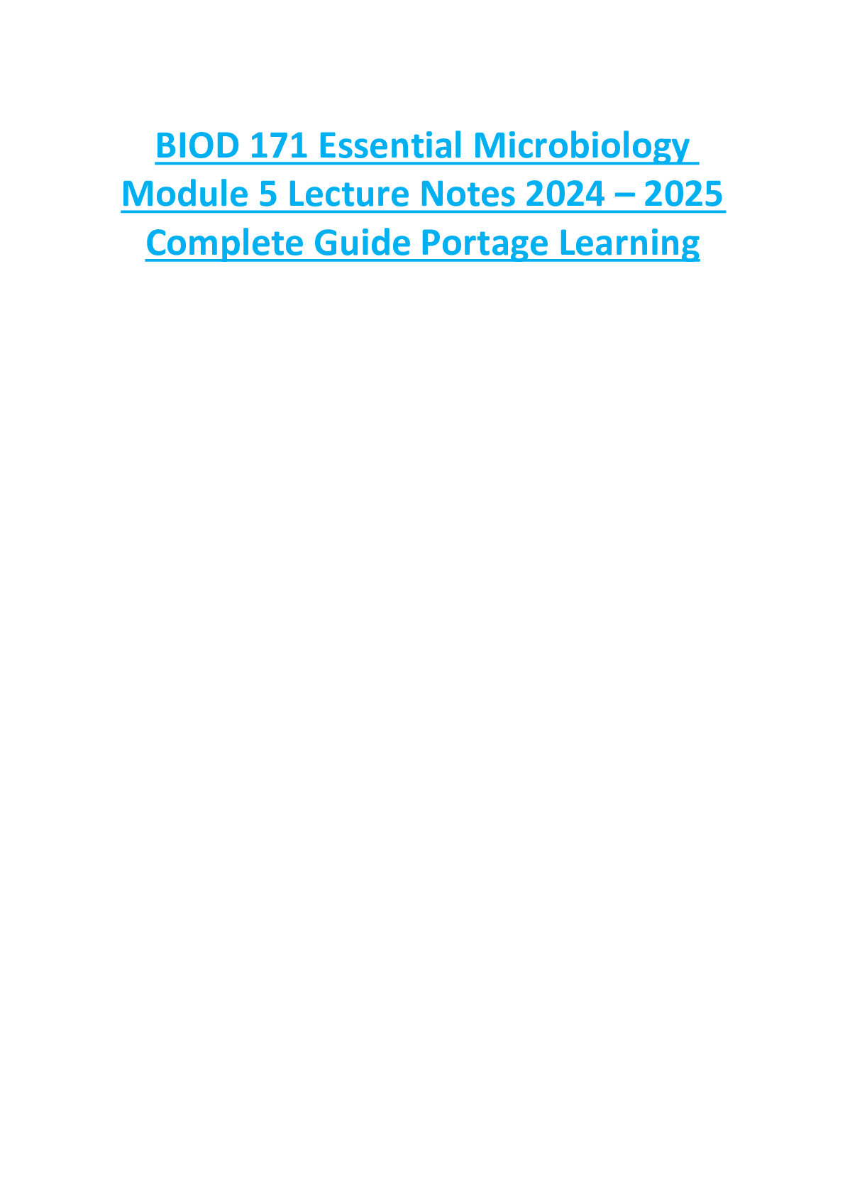 BIOD 171 Essential Microbiology Module 5 Lecture Notes 2024 – 2025 Complete Guide Portage Learning
