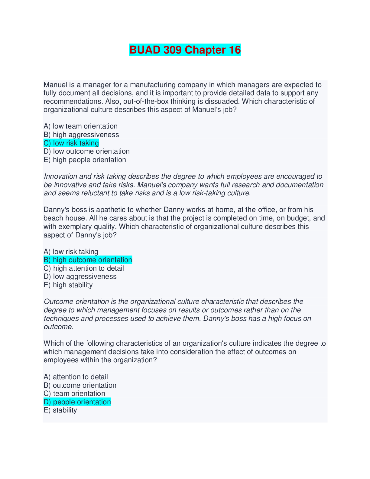 Business> EXAM > BUAD 309 Chapter 1 | Questions, Answers and Rationales (All)
