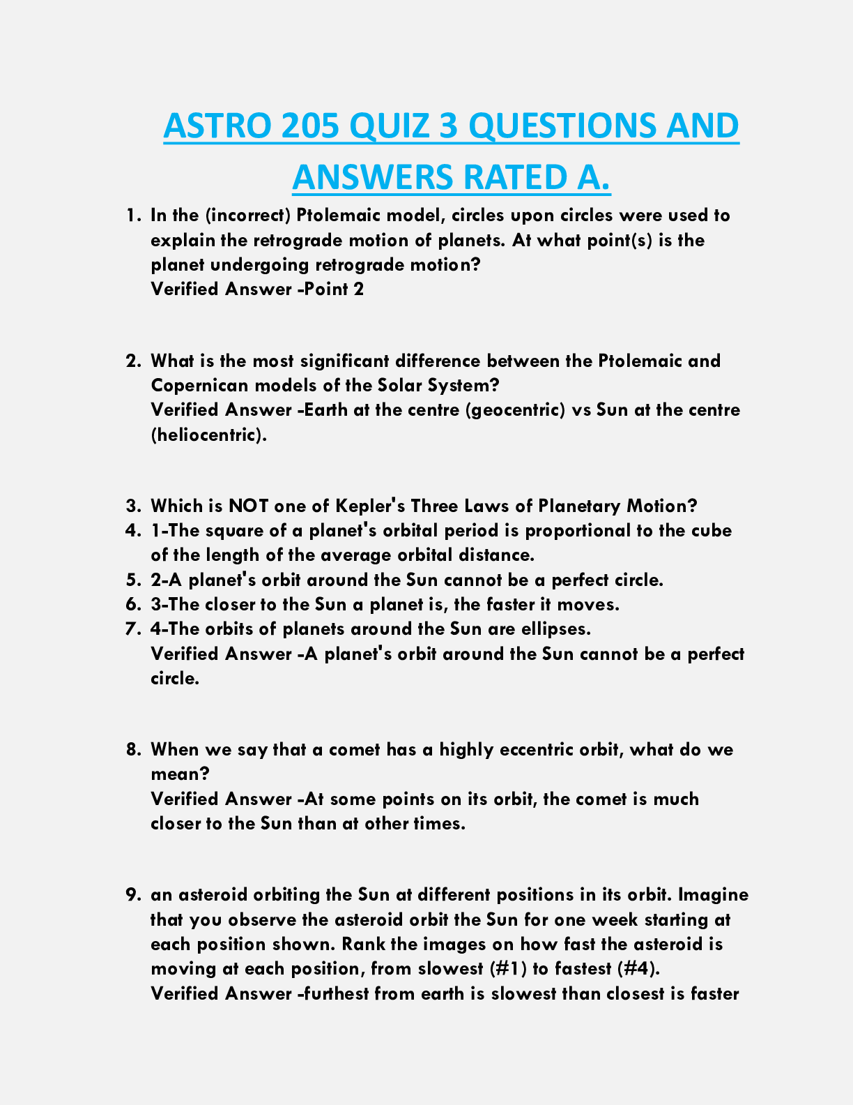 ASTRO 205 QUIZ 3 QUESTIONS AND ANSWERS RATED A.