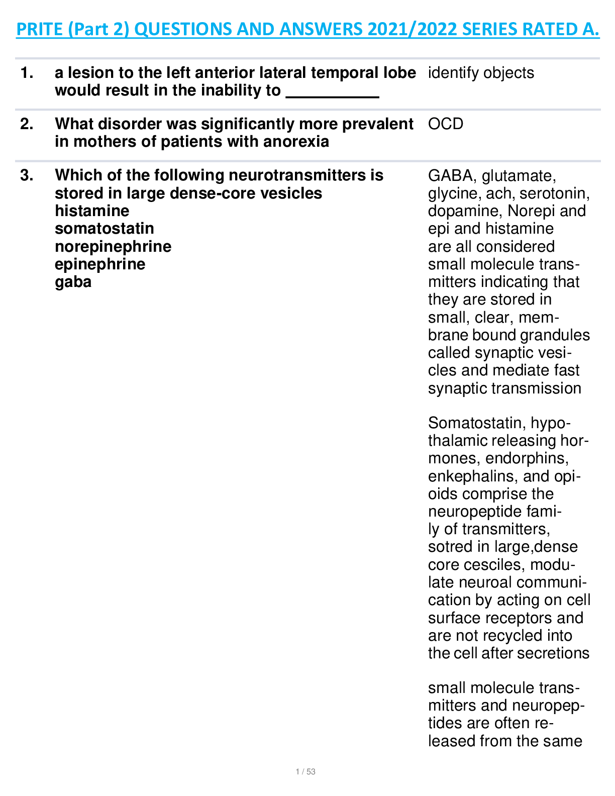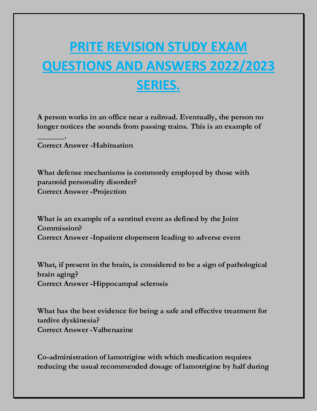 PRITE REVISION STUDY QUESTIONS AND ANSWERS LATEST UPDATED RATED A.
