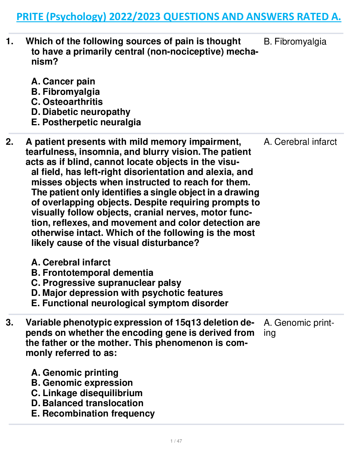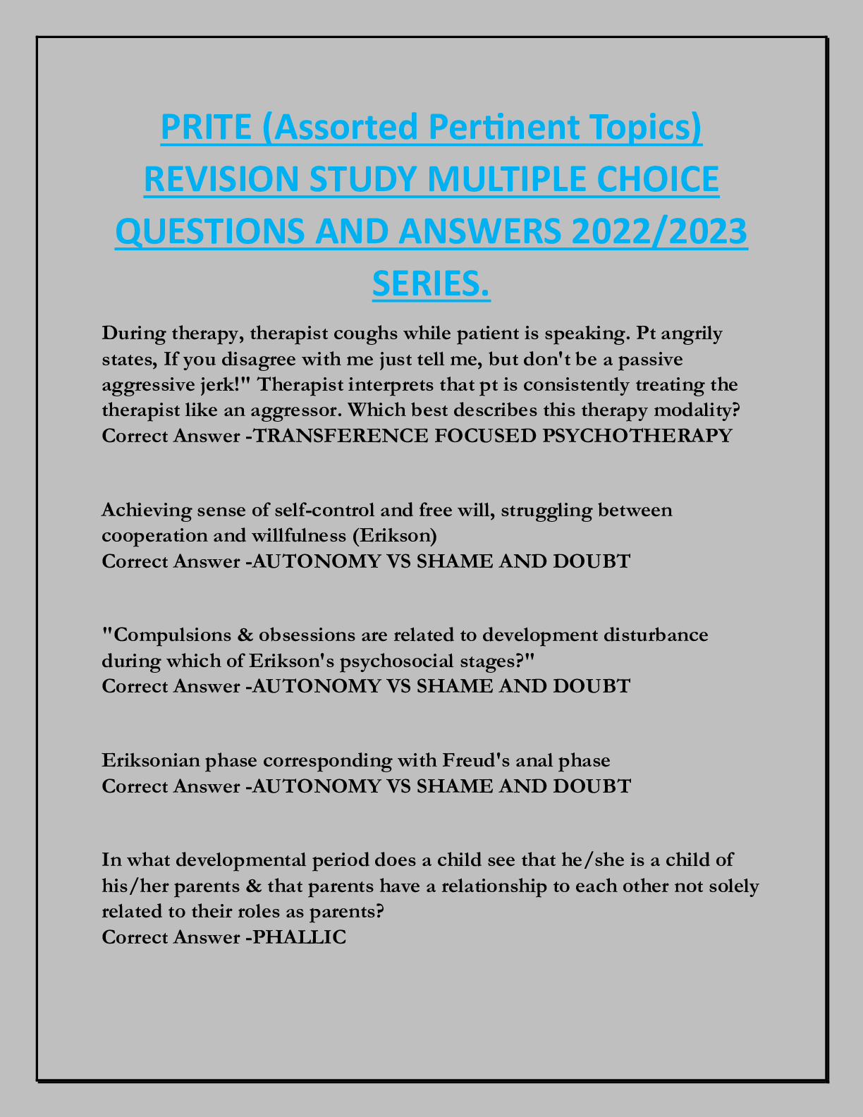PRITE (Psychology) 2022/2023 QUESTIONS AND ANSWERS RATED A.