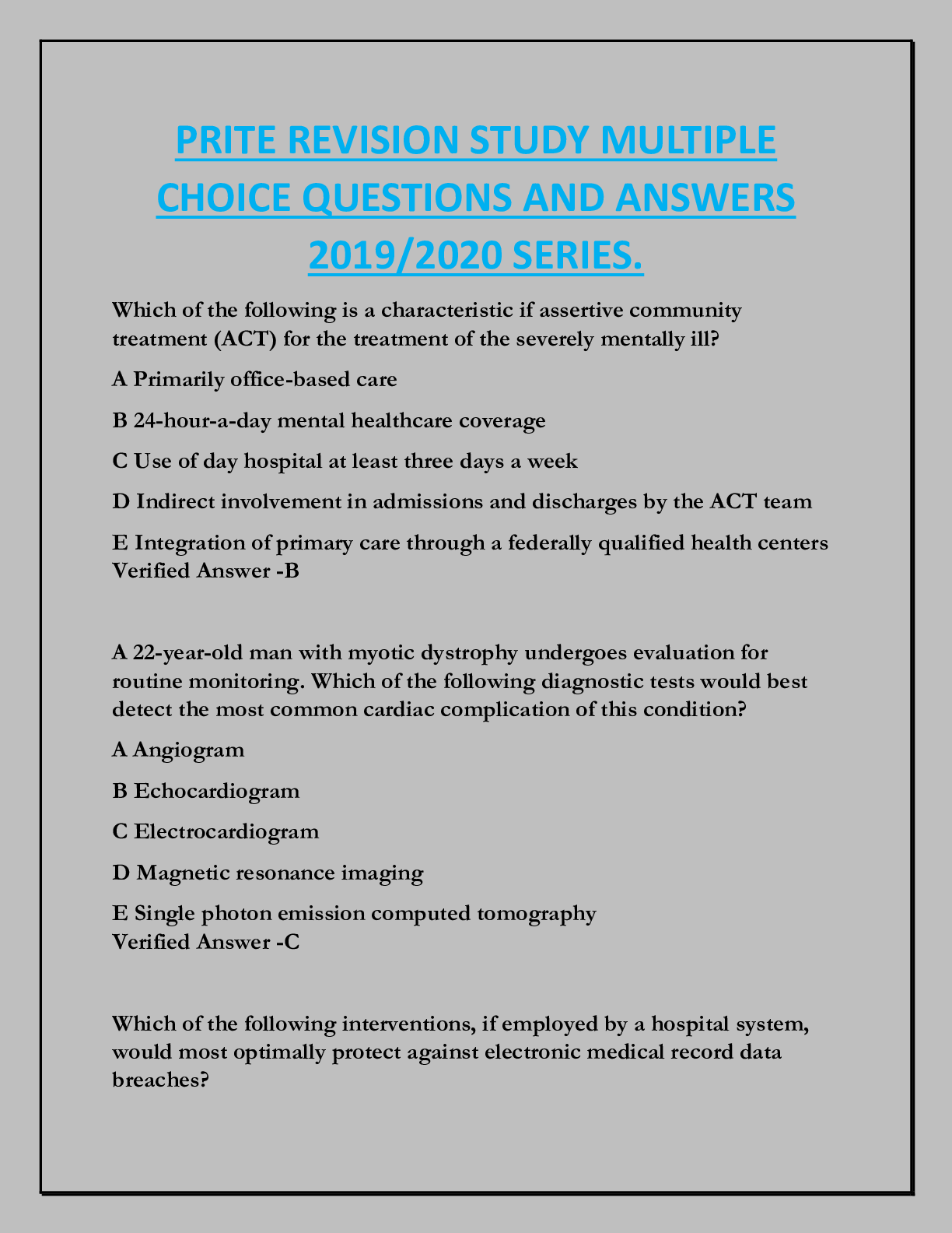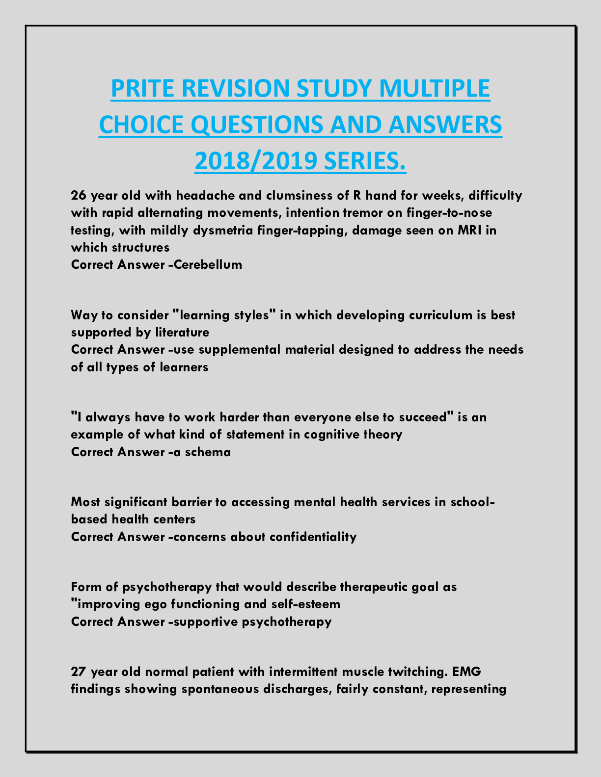 PRITE (Part 1) REVISION STUDY MULTIPLE CHOICE QUESTIONS AND ANSWERS 2019/2020 SERIES.
