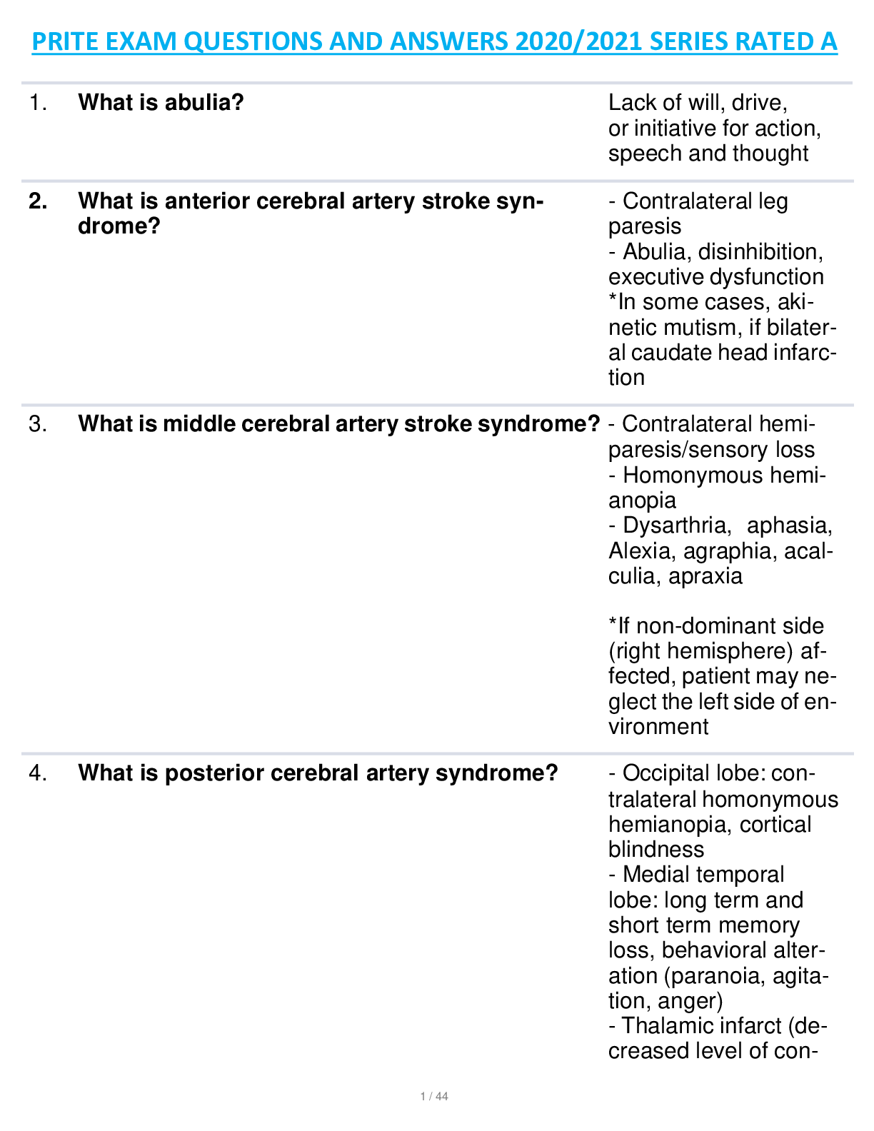 PRITE REVISION STUDYQUESTIONS AND ANSWERS 2018/2019 SERIES.