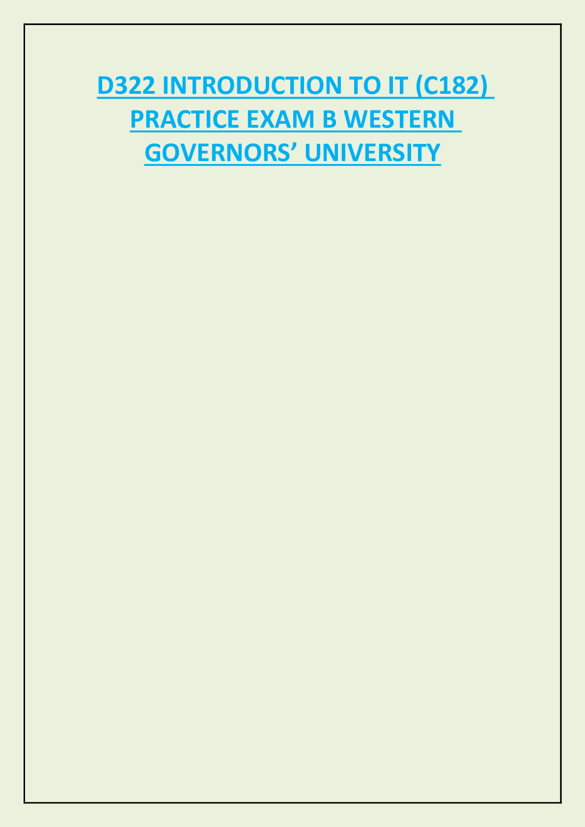 D322 INTRODUCTION TO IT (C182) PRACTICE EXAM B WESTERN GOVERNORS’ UNIVERSITY