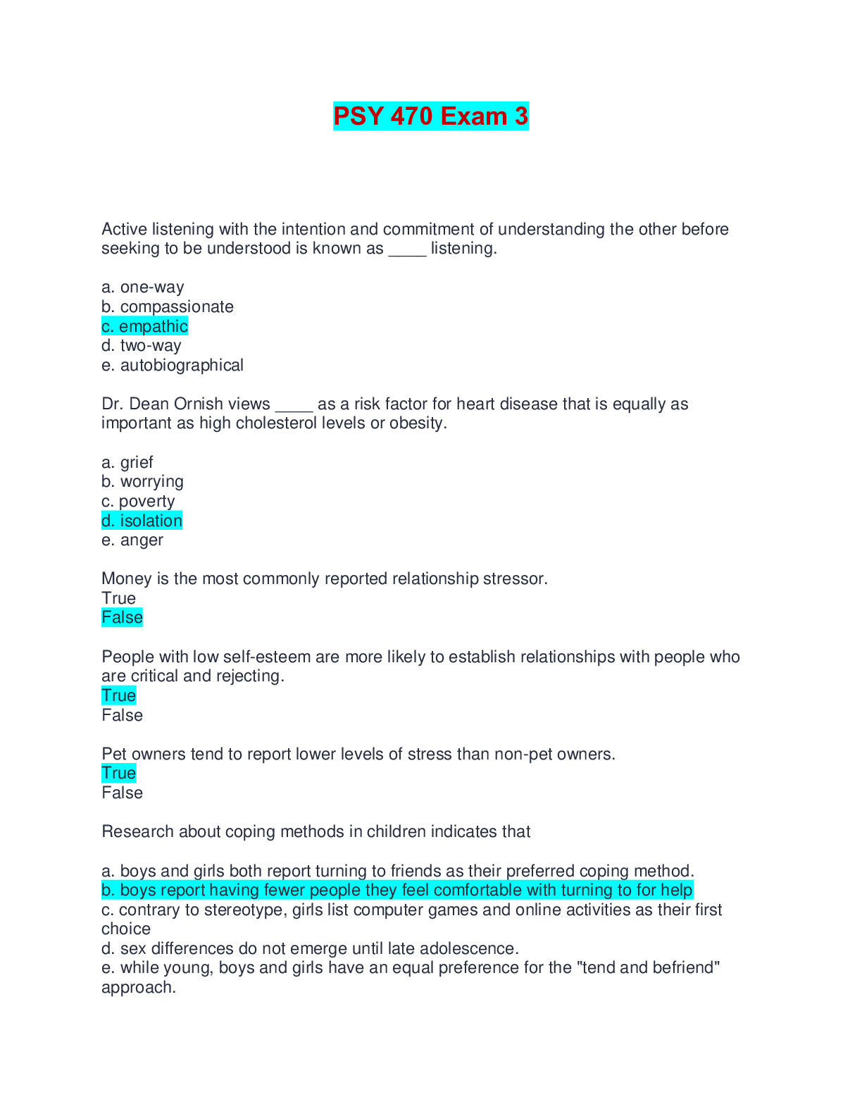 Psychology> EXAM > PSY 470 Exam 3 | Questions with Verified Answers (All)