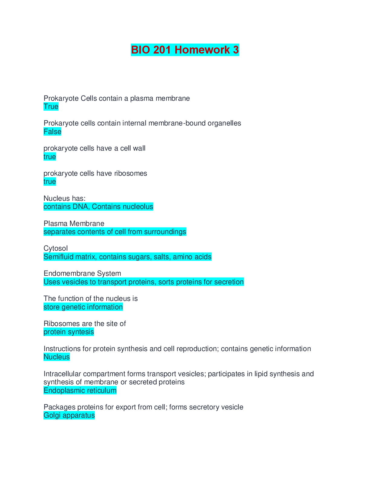 Biology> EXAM > BIO 201 Homework 3 | Questions and Answers (All)