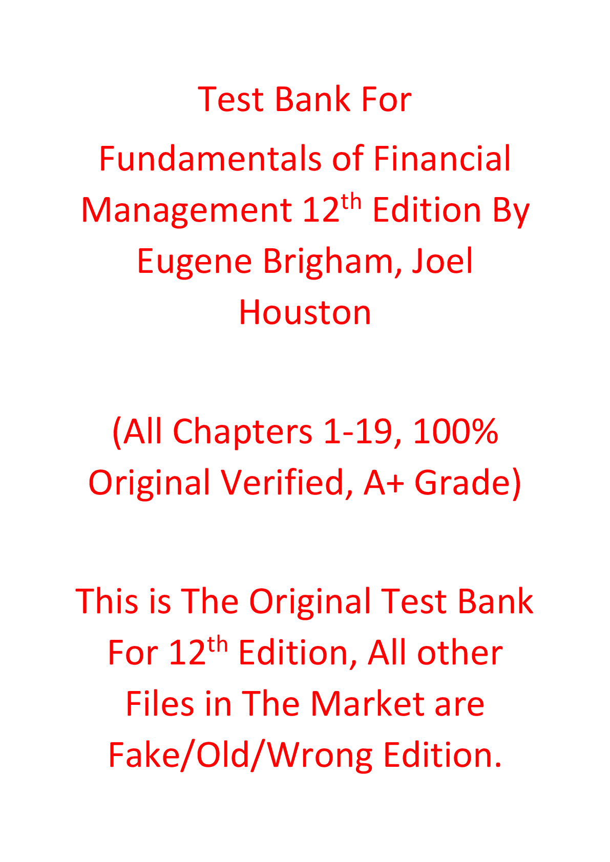 Test Bank For Fundamentals of Financial Management (Concise) 12th Edition By Eugene Brigham, Joel Houston Test Bank For Fundamentals of Financial Management (Concise) 12th Edition By Eugene Brigham,...