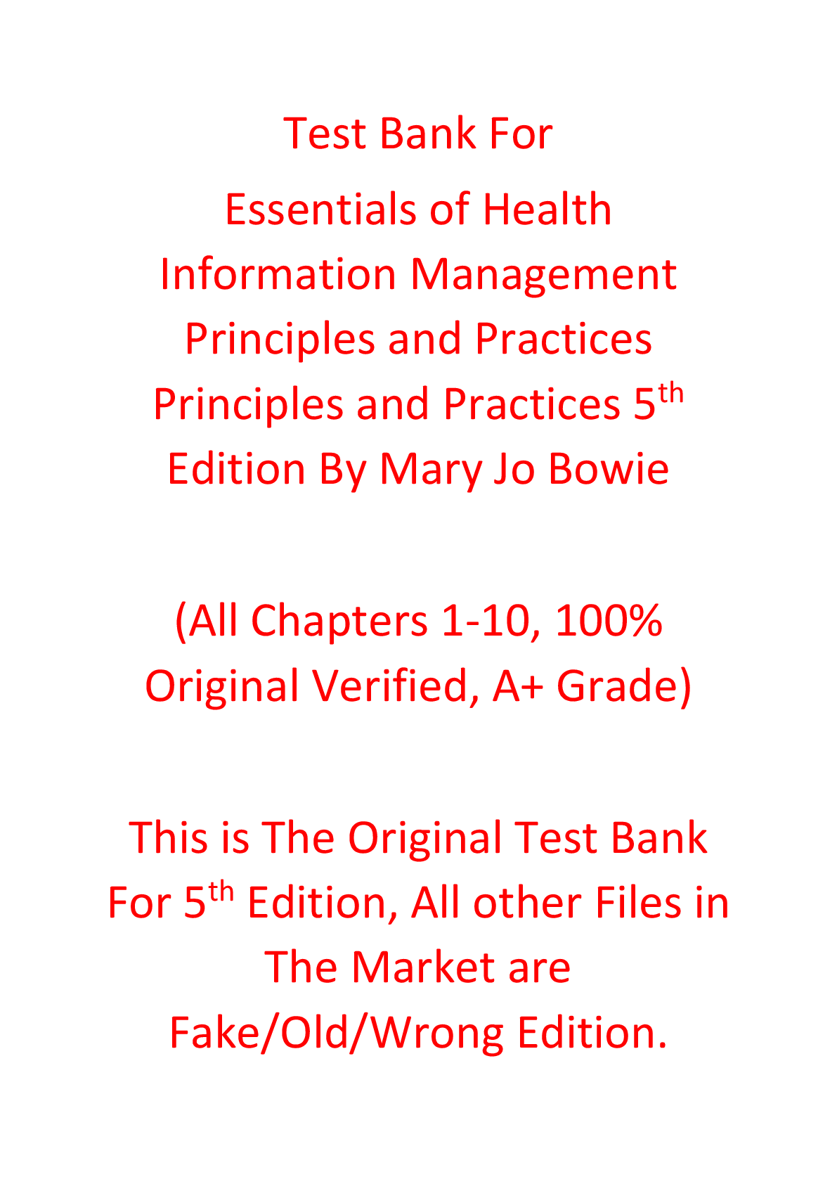 Test Bank For Essentials of Health Information Management Principles and Practices Principles and Practices 5th Edition By Mary Jo Bowie Test Bank For Essentials of Health Information Management Prin...
