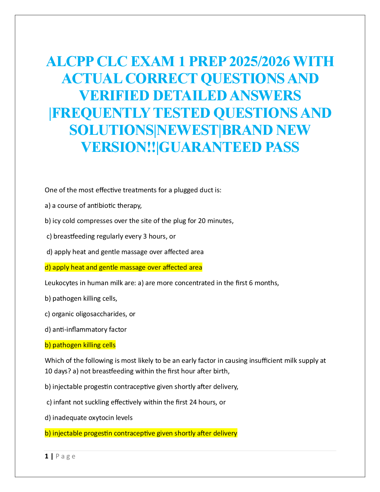 ALCPP CLC EXAM 1 PREP 2025/2026 WITH ACTUAL CORRECT QUESTIONS AND VERIFIED DETAILED ANSWERS |FREQUENTLY TESTED QUESTIONS AND SOLUTIONS|NEWEST|BRAND NEW VERSION!!|GUARANTEED PASS
