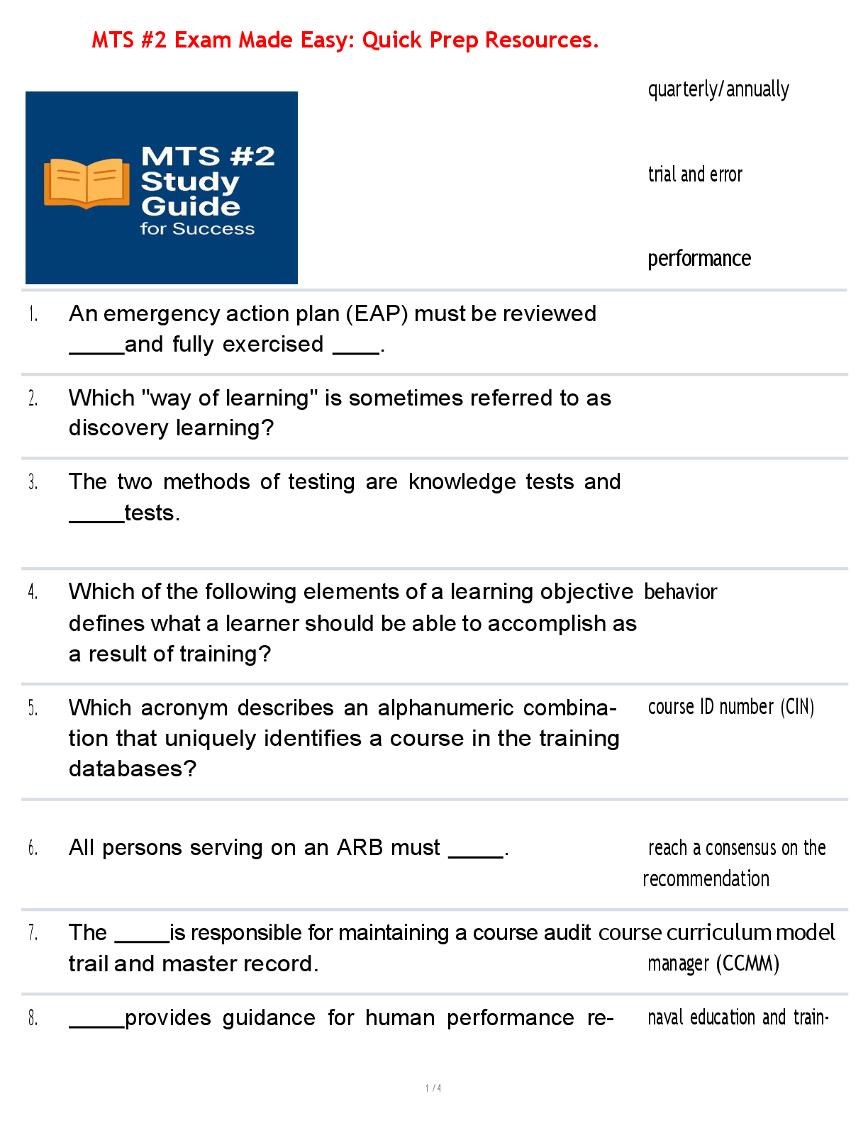 Prepare with confidence for the Navy Master Training Specialist (MTS) certification using this comprehensive study guide designed for Navy instructors and students. Our MTS exam prep resources cover e...
