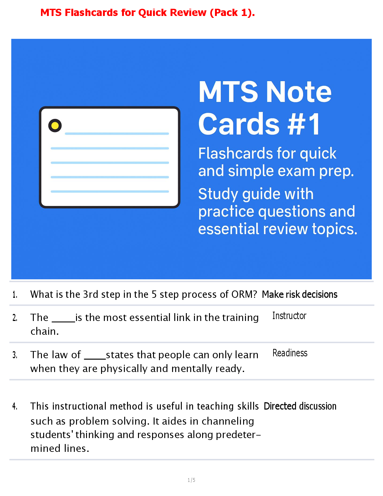 MTS Note Cards #1 are designed to help students master key concepts quickly and effectively. These MTS flashcards provide a simple, organized way to review essential topics, making exam prep easier an...