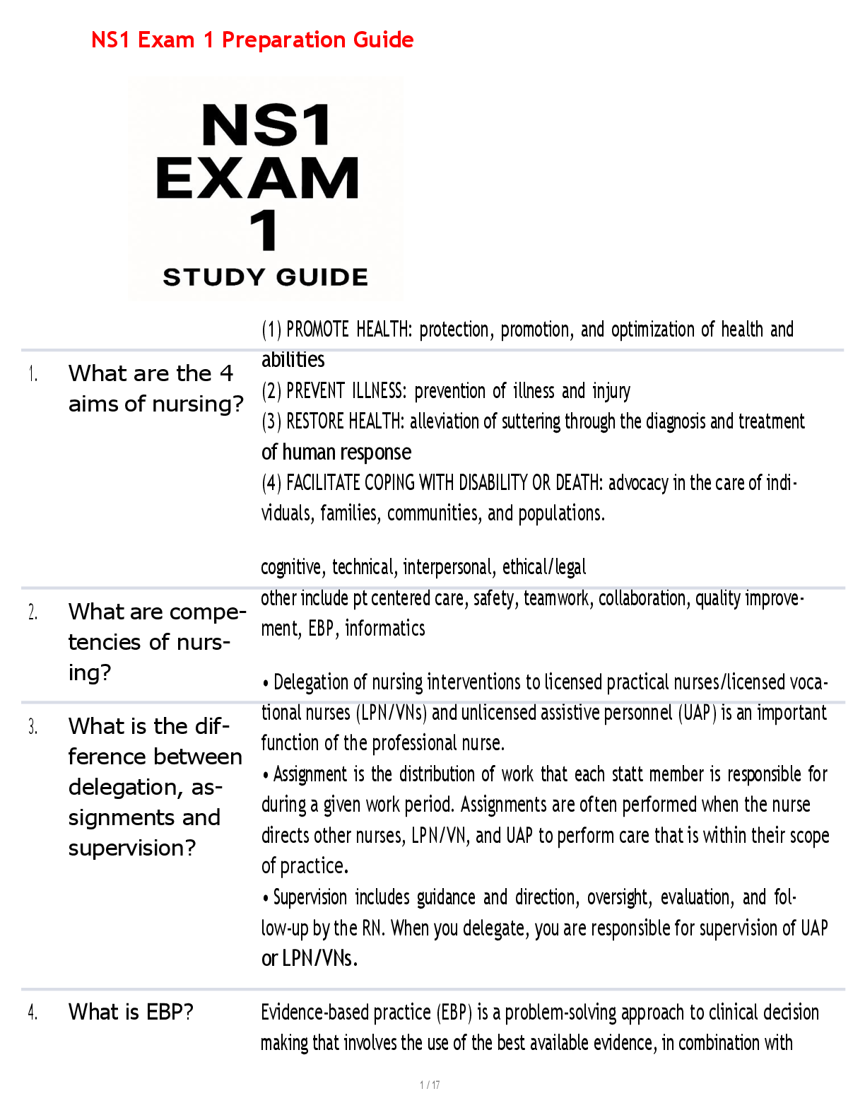*NURSING> QUESTIONS & ANSWERS > NS1 Exam 1 Preparation Guide (All)