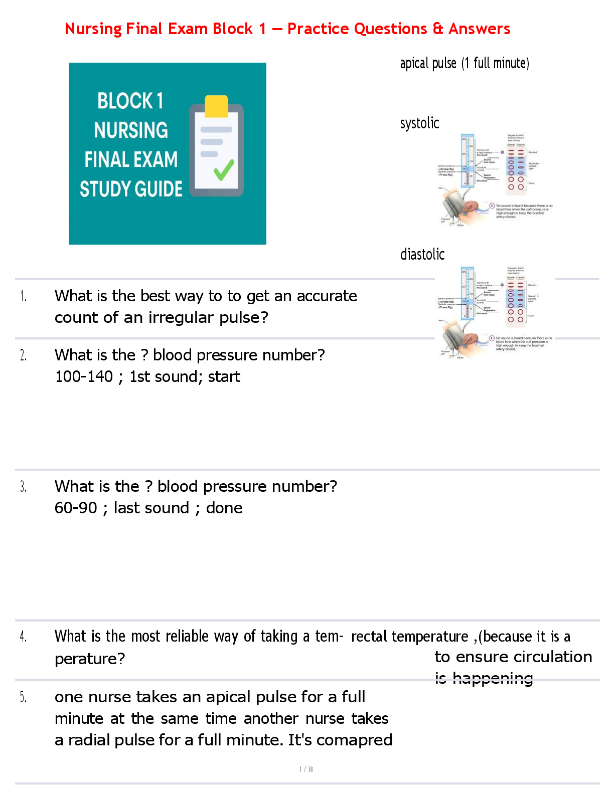 *NURSING> QUESTIONS & ANSWERS > Nursing Final Exam Block 1 – Practice Questions & Answers (All)