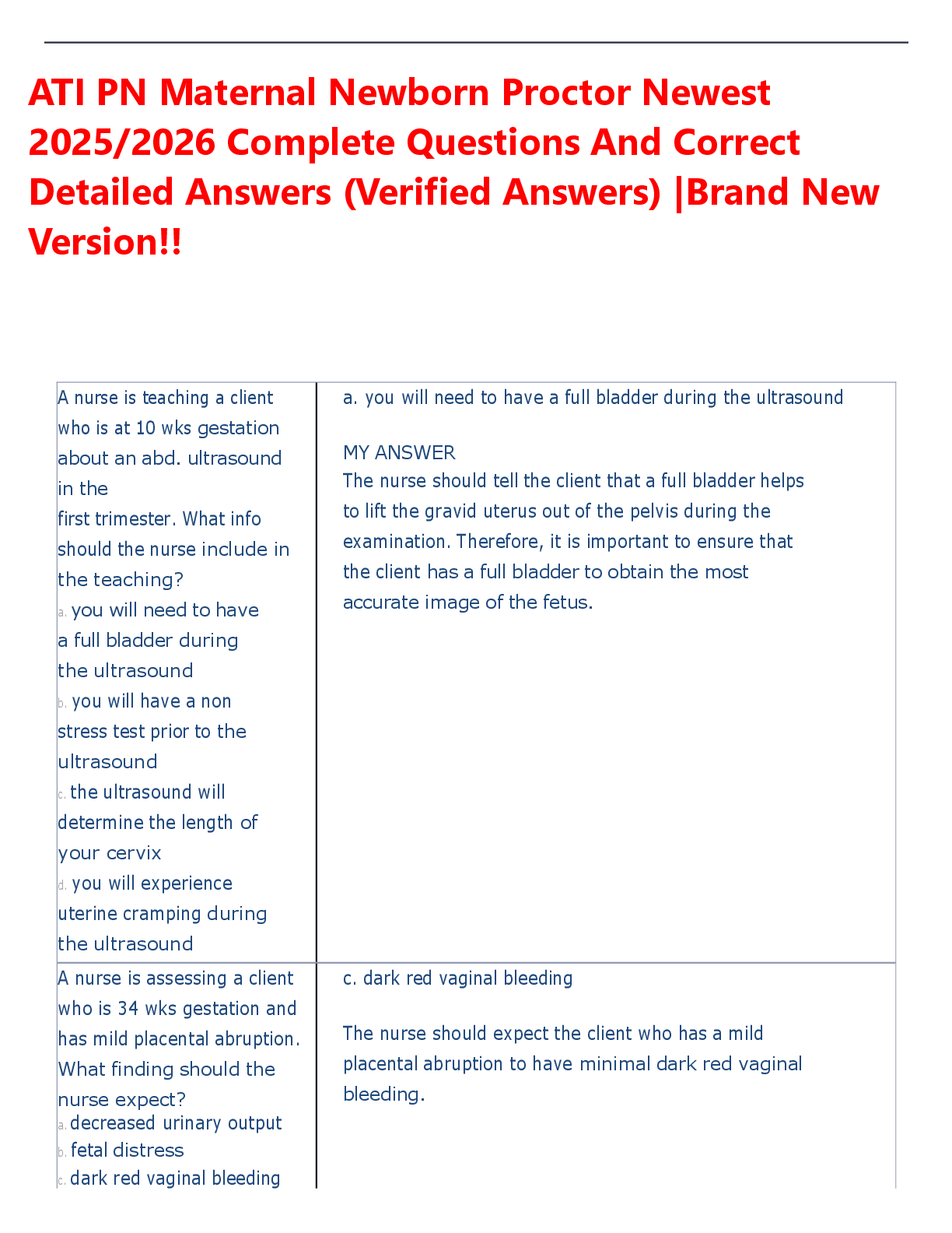ATI PN Peds FINAL EXAM Newest 2025/2026 Complete Questions And Correct Detailed Answers (Verified Answers) |Brand New Version!ATI PN Peds FINAL EXAM Newest 2025/2026 Complete Questions And Correct...