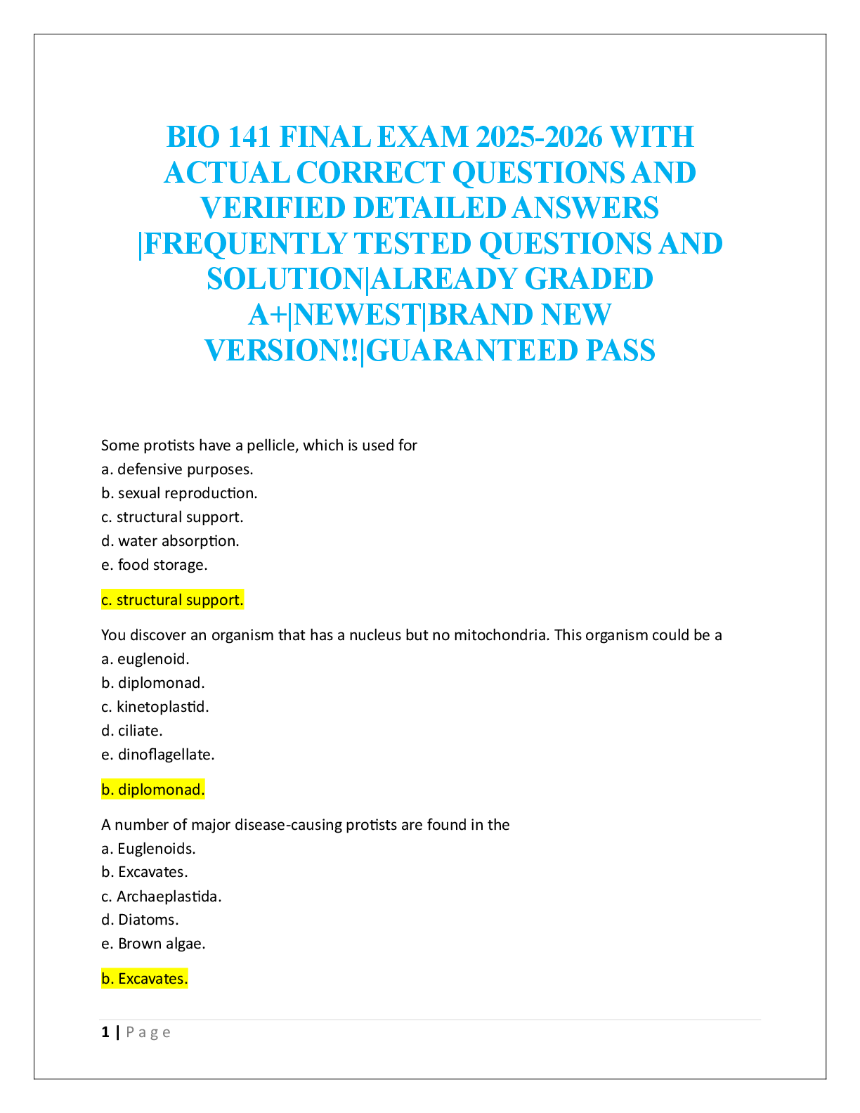 BIO 141 FINAL EXAM 2025-2026 WITH ACTUAL CORRECT QUESTIONS AND VERIFIED DETAILED ANSWERS |FREQUENTLY TESTED QUESTIONS AND SOLUTION|ALREADY GRADED A+|NEWEST|BRAND NEW VERSION!!|GUARANTEED PASS