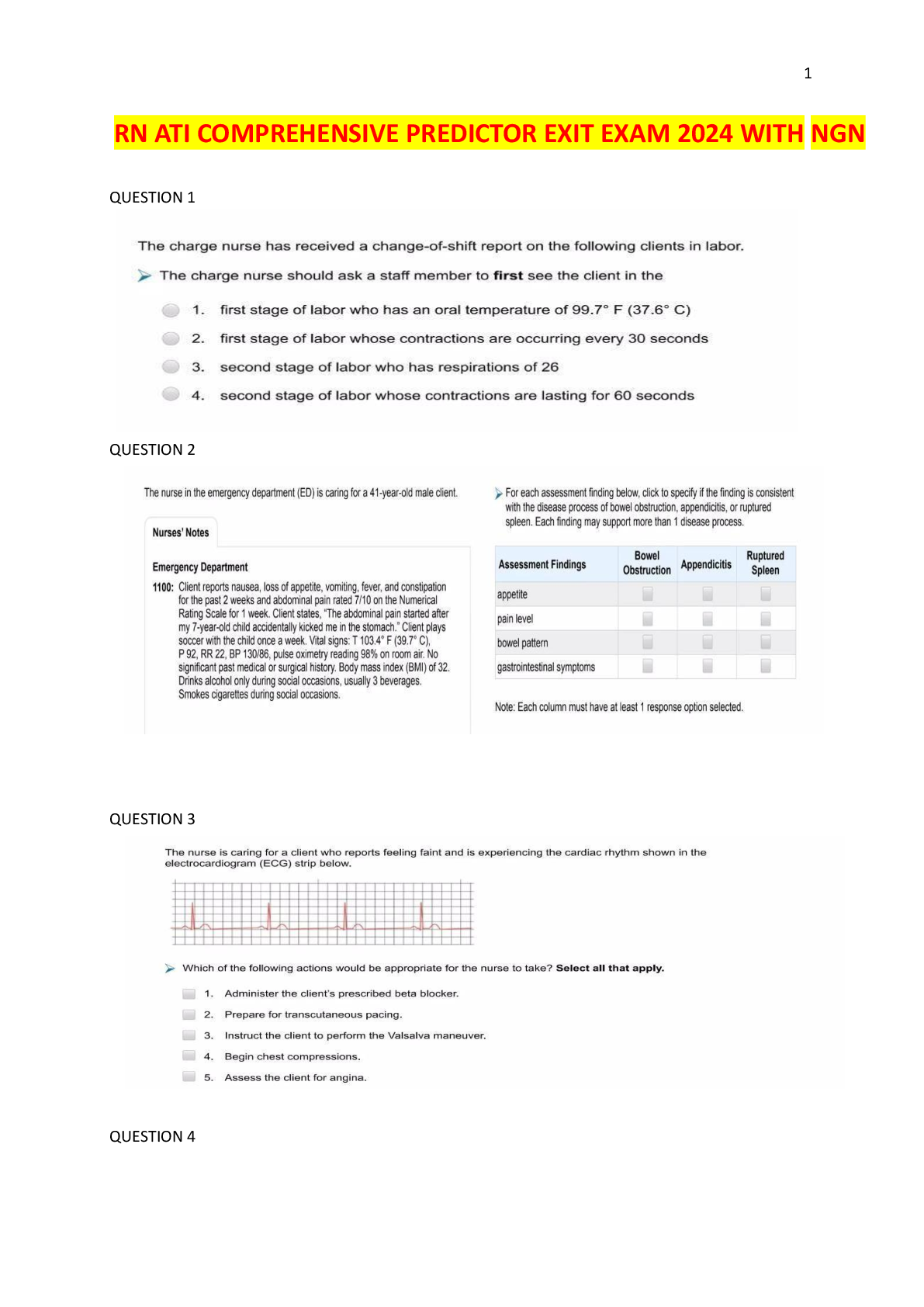ATI RN Comprehensive Predictor 2023 (Latest 2025 Version) Exit Exam with NGN 180 Questions and Clinical Solutions | Actual RN ATI NGN-Style Predictor Exam!... [Show More]