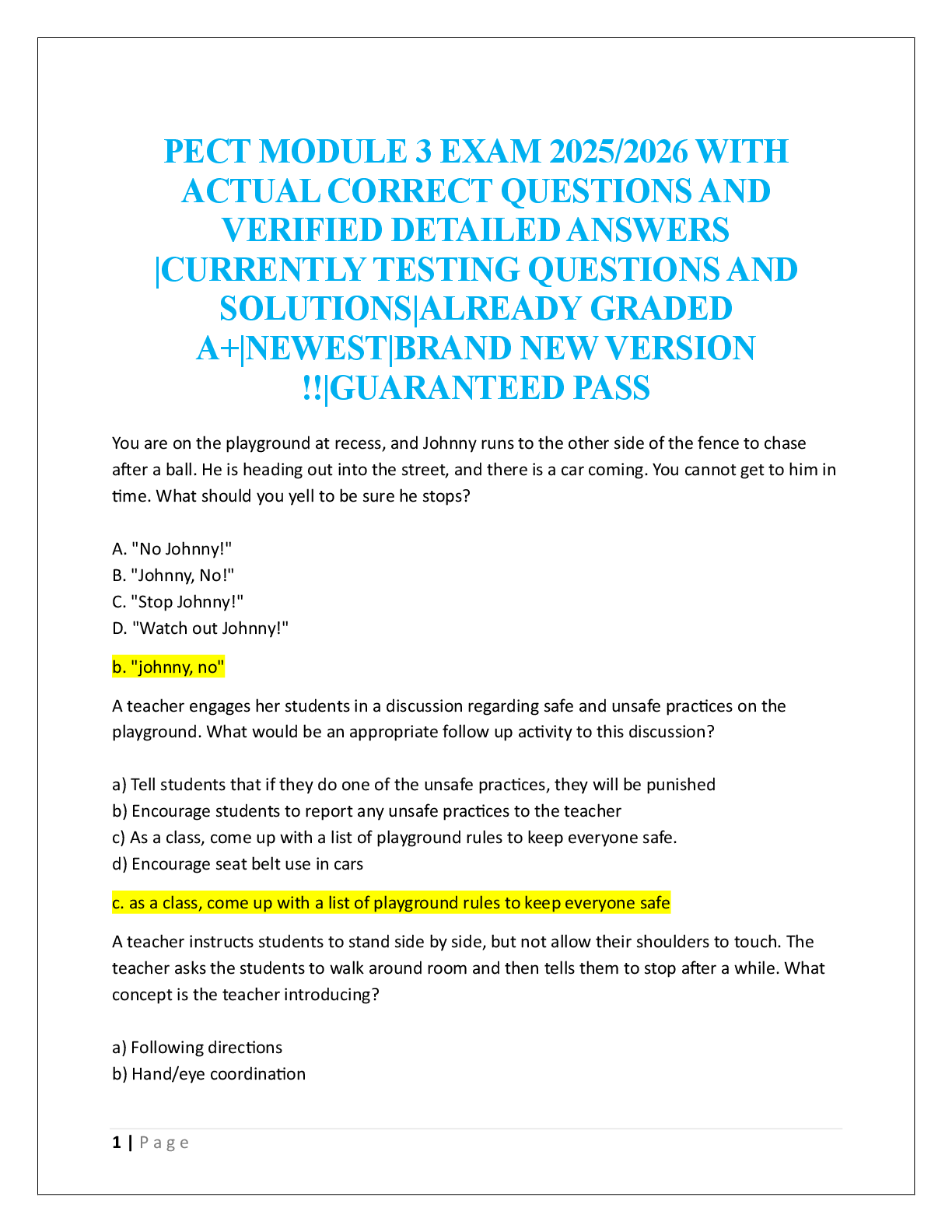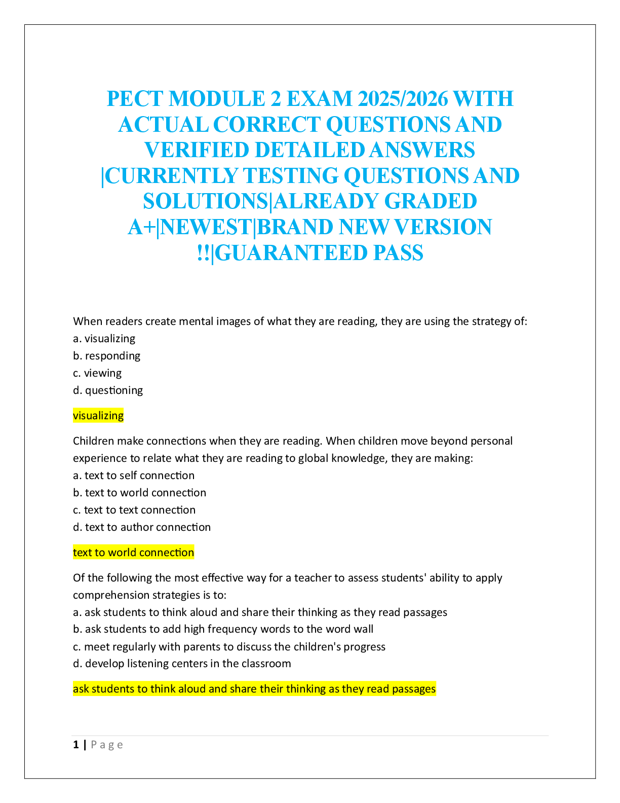 PECT MODULE 1,2 AND 3 EXAM 2025/2026 WITH ACTUAL CORRECT QUESTIONS AND VERIFIED DETAILED ANSWERS |CURRENTLY TESTING QUESTIONS AND SOLUTIONS|ALREADY GRADED A+|NEWEST|BRAND NEW VERSION !!|GU... ARANTEED PASS [Show More]