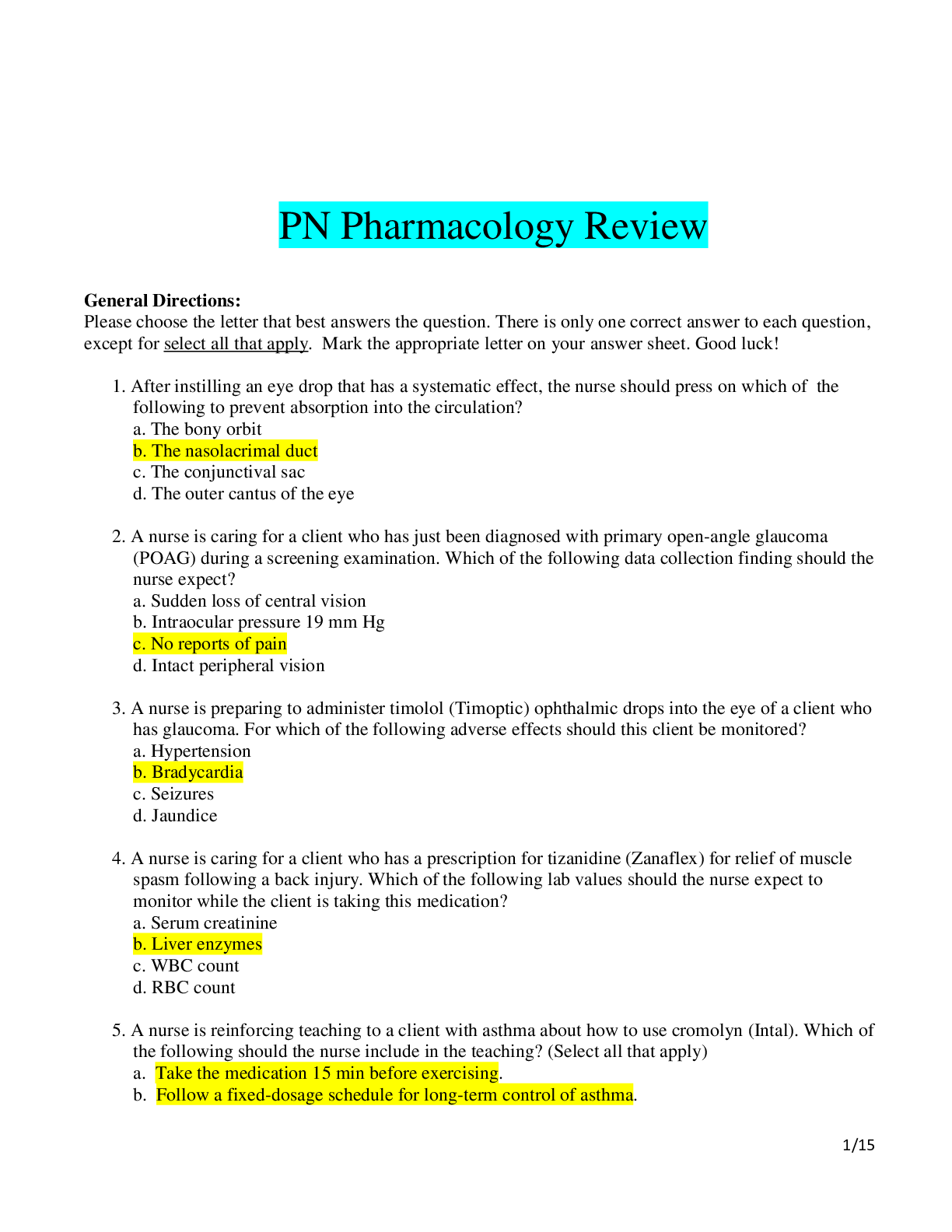 Pharmacology> EXAM > ATI PN pharma review 75 items answer key 8-21-13 (All)